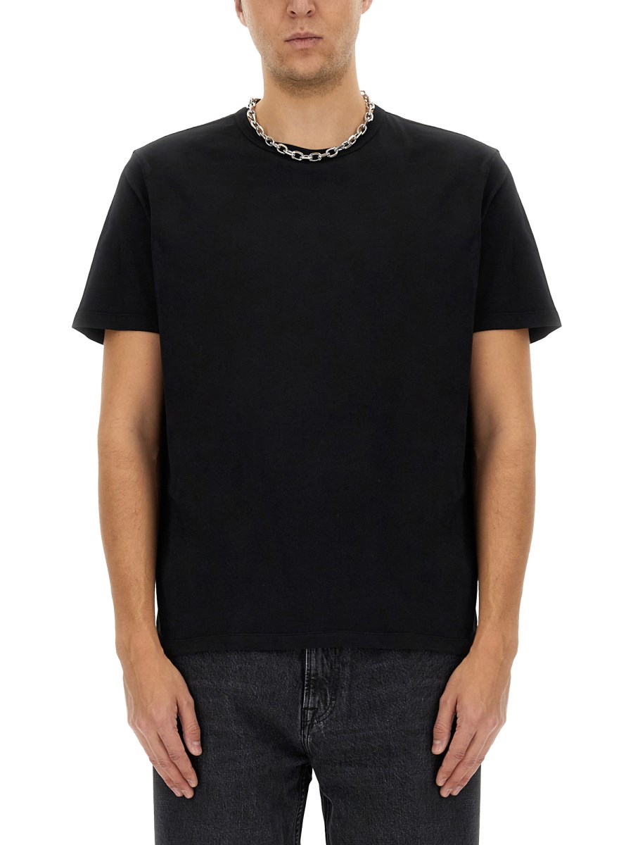 Provate il perfetto mix di comfort e stile con questa T-shirt a girocollo in cotone nero di Our Legacy. Realizzata con cura, questa T-shirt offre comfort e stile. Realizzata in cotone di alta qualità, garantisce una sensazione morbida e traspirante sulla pelle. Il classico design a girocollo aggiunge un tocco di raffinatezza, rendendola adatta a diverse occasioni. Con il suo versatile colore nero, questa T-shirt si abbina senza sforzo a qualsiasi abbigliamento, diventando un capo indispensabile per ogni individuo alla moda.