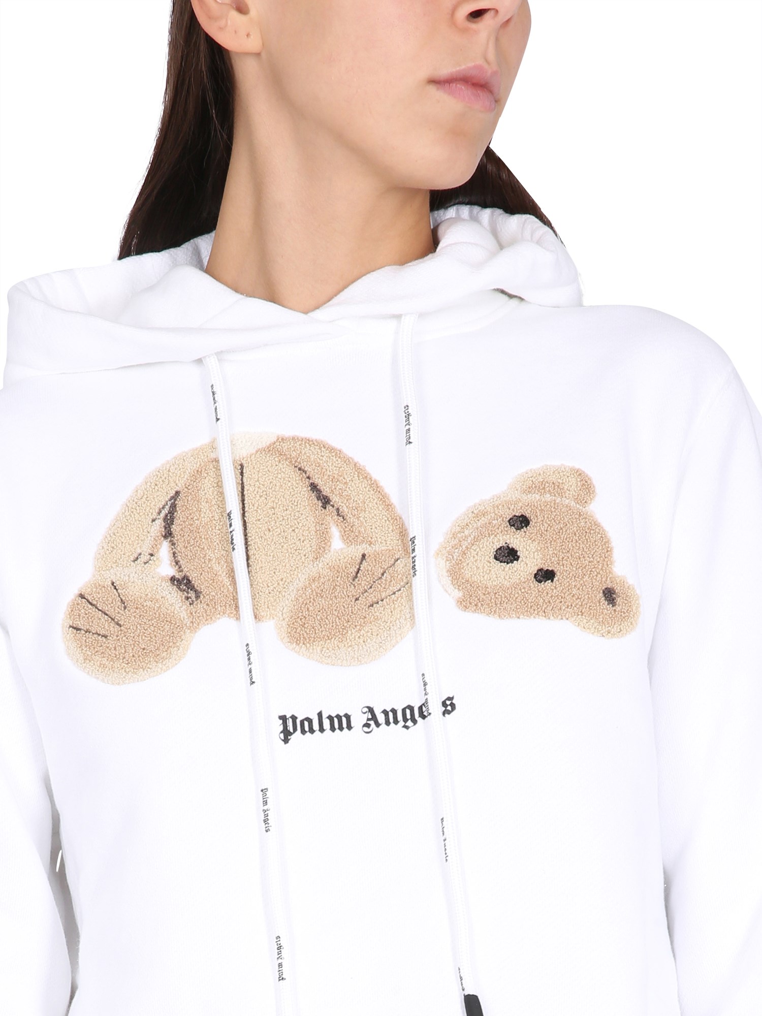Questa felpa con cappuccio di Palm Angels è morbidissima e calda, l'accessorio perfetto per le giornate fredde. Il pullover è dotato di cappuccio con coulisse, maniche lunghe e orlo dritto. Ha una vestibilità regolare che consente di muoversi liberamente e un ricamo "Bear" sul davanti.