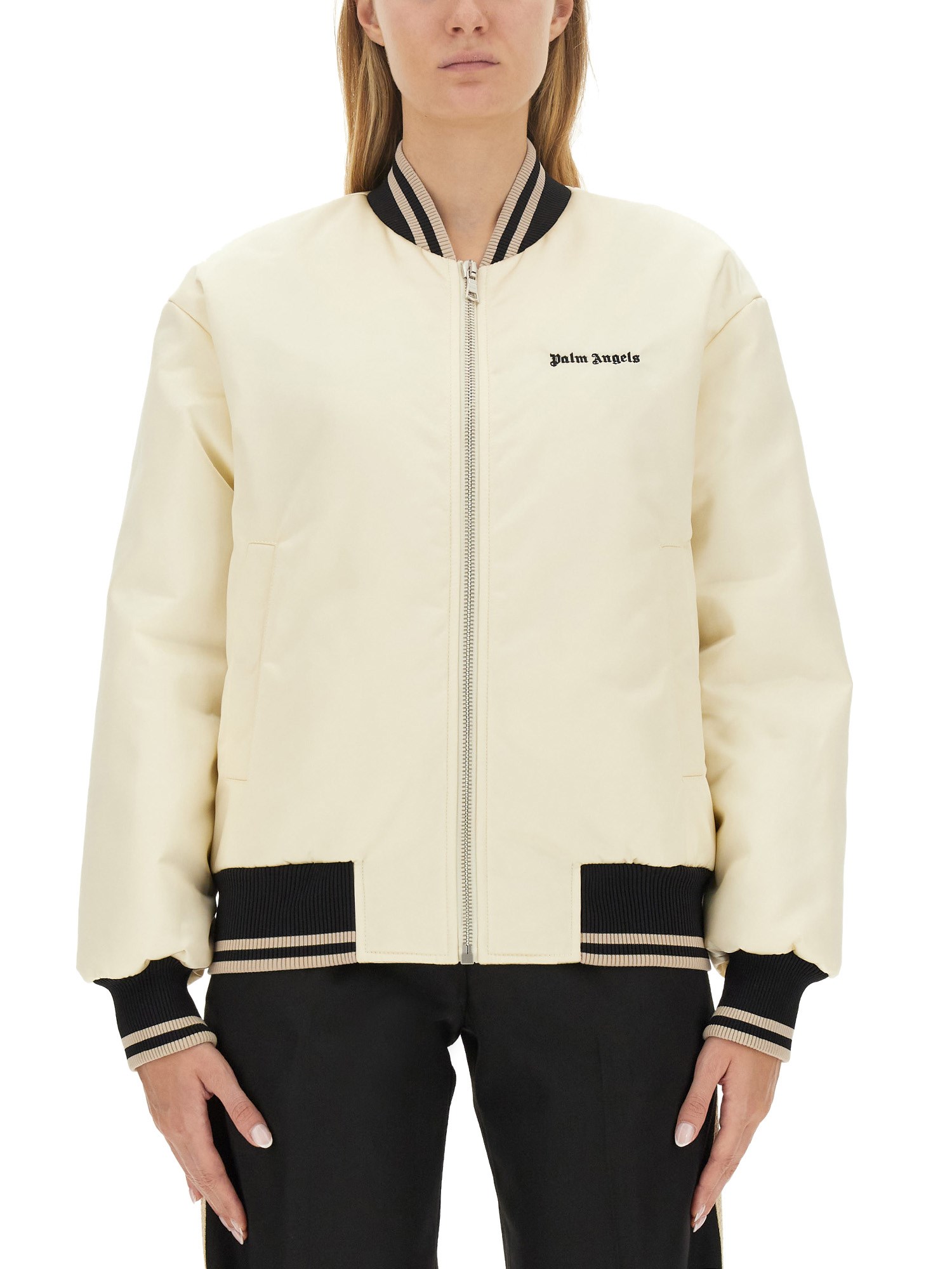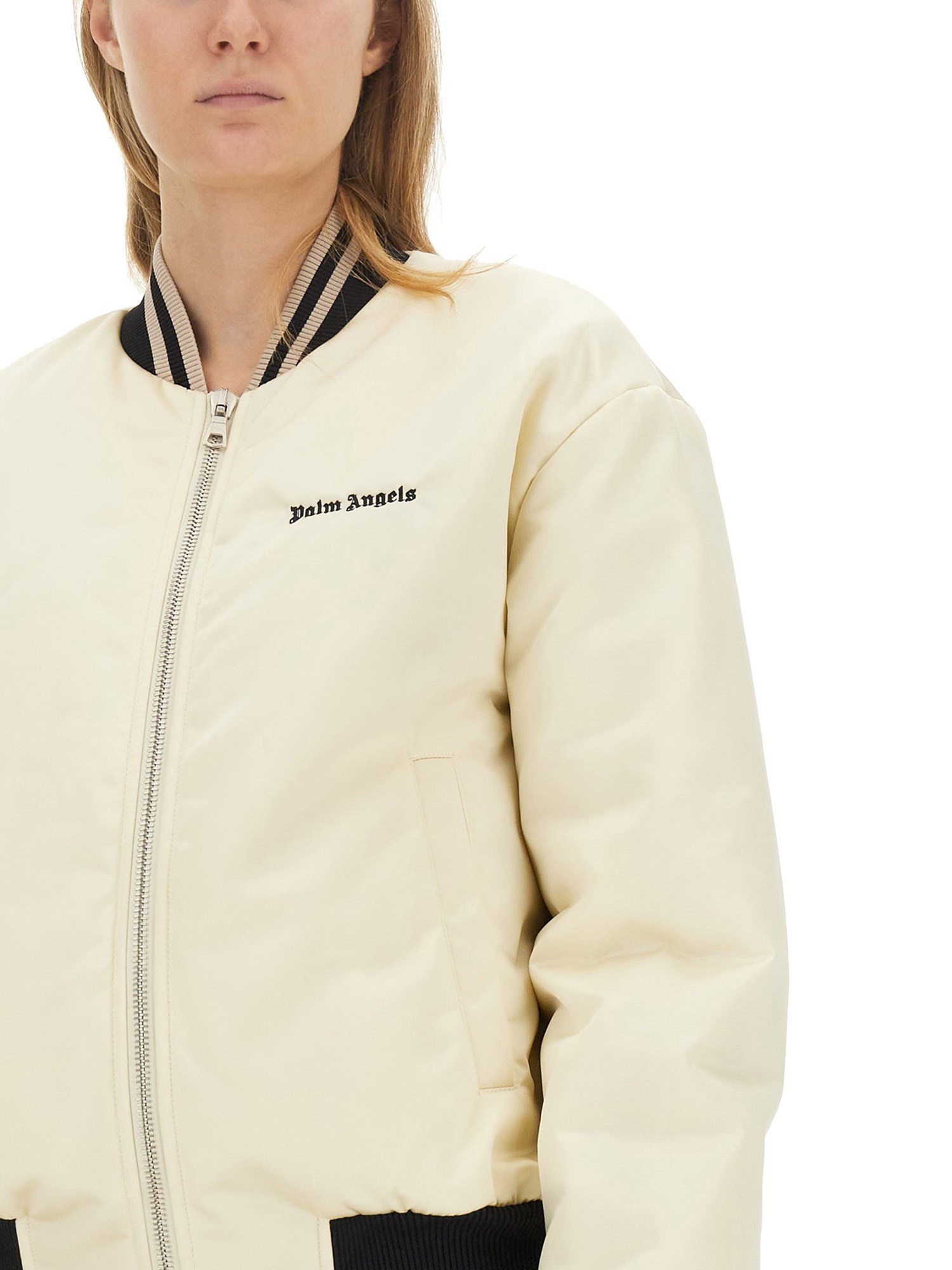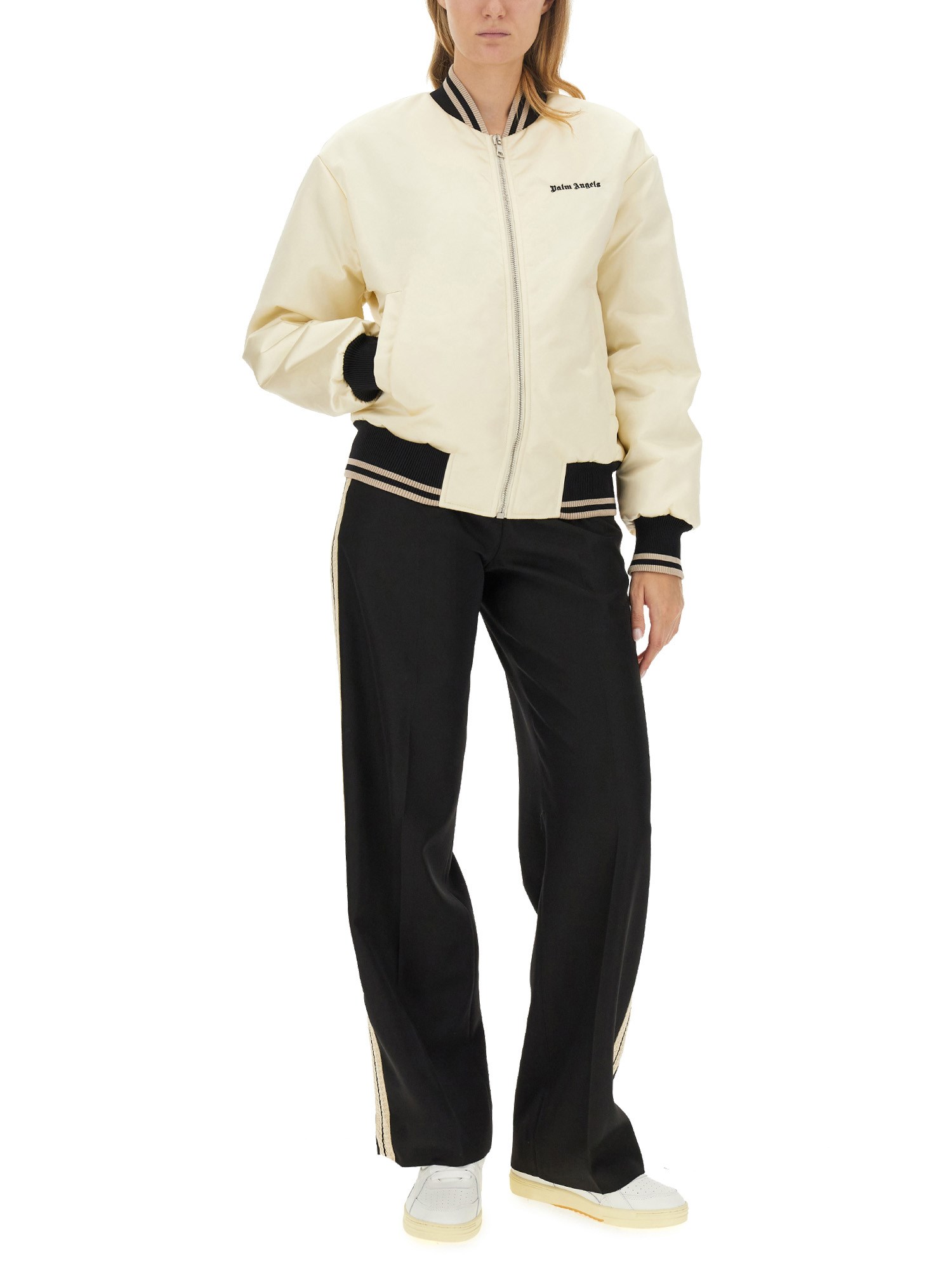 La Classic Bomber Jacket di Palm Angels è realizzata in tessuto poliammidico, resistente e leggero. Questa giacca è la scelta perfetta per le attività casual all'aperto. Questo bomber è realizzato in un tessuto di poliammide liscio e lussuoso, che vi farà sentire al riparo e protetti. Questa giacca è abbastanza versatile da poter essere indossata con un look casual o per un evento più formale.