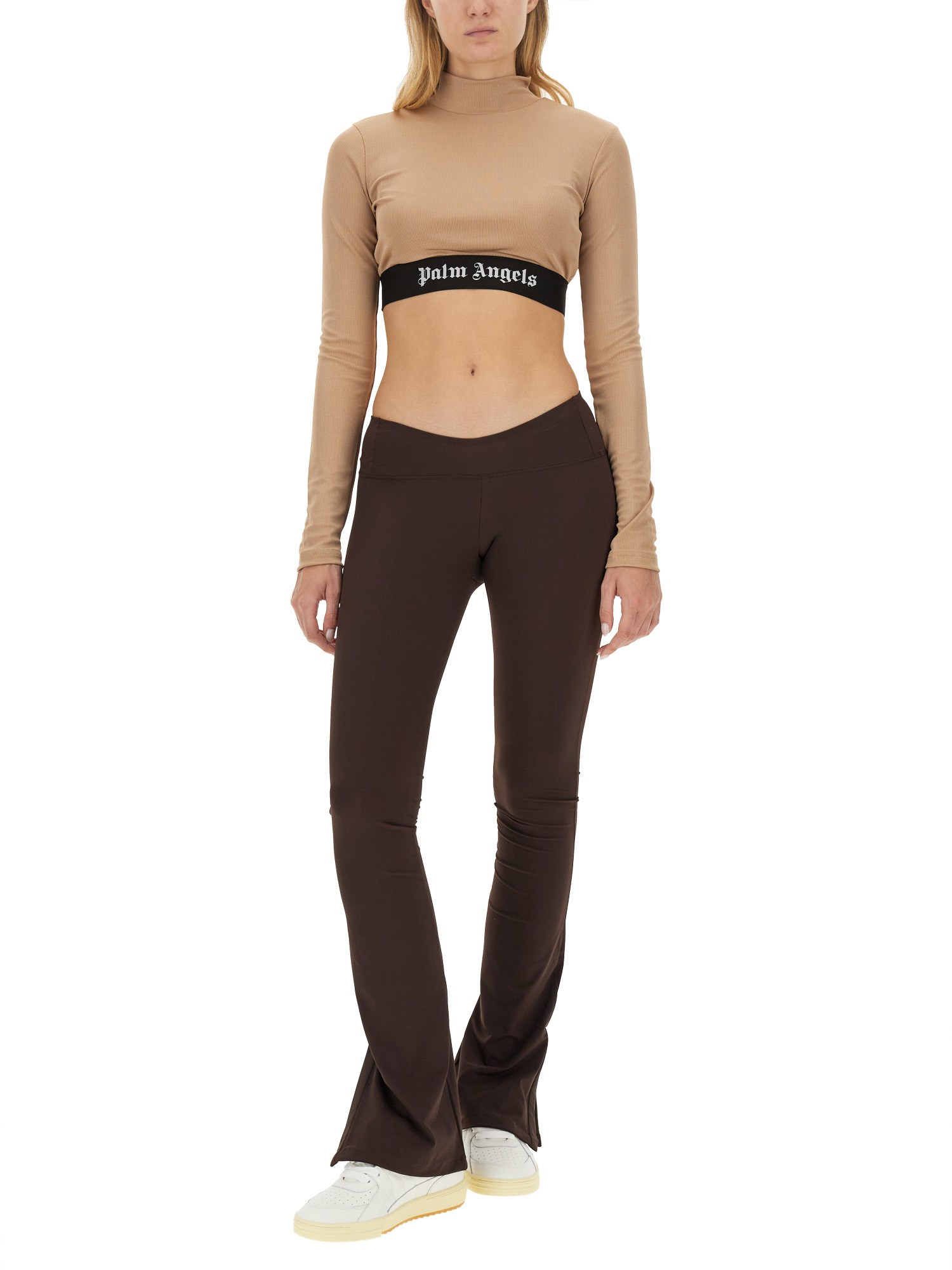Questi simpatici e sexy leggings di Palm Angels presentano un taglio a cuore nella parte superiore e sono svasati per una vestibilità ancora più comoda. La parte inferiore è svasata, il che è un'ottima caratteristica perché consente di muoversi comodamente. I comodi leggings sono dotati di un elastico in vita che li rende elastici e perfetti per l'allenamento.
