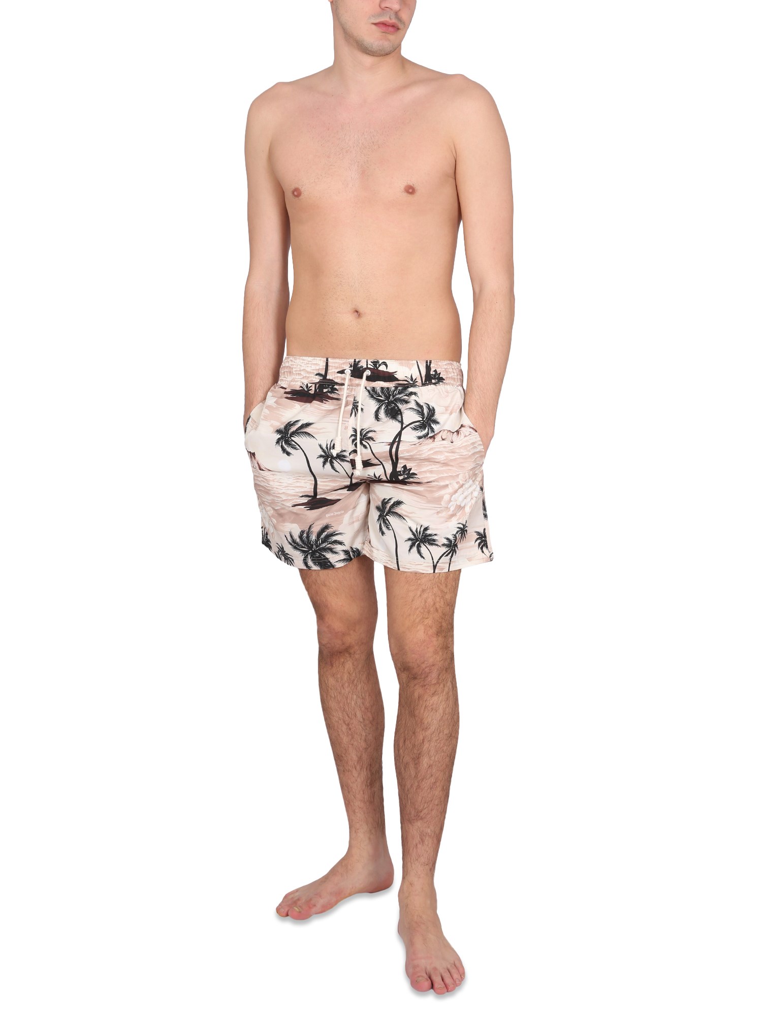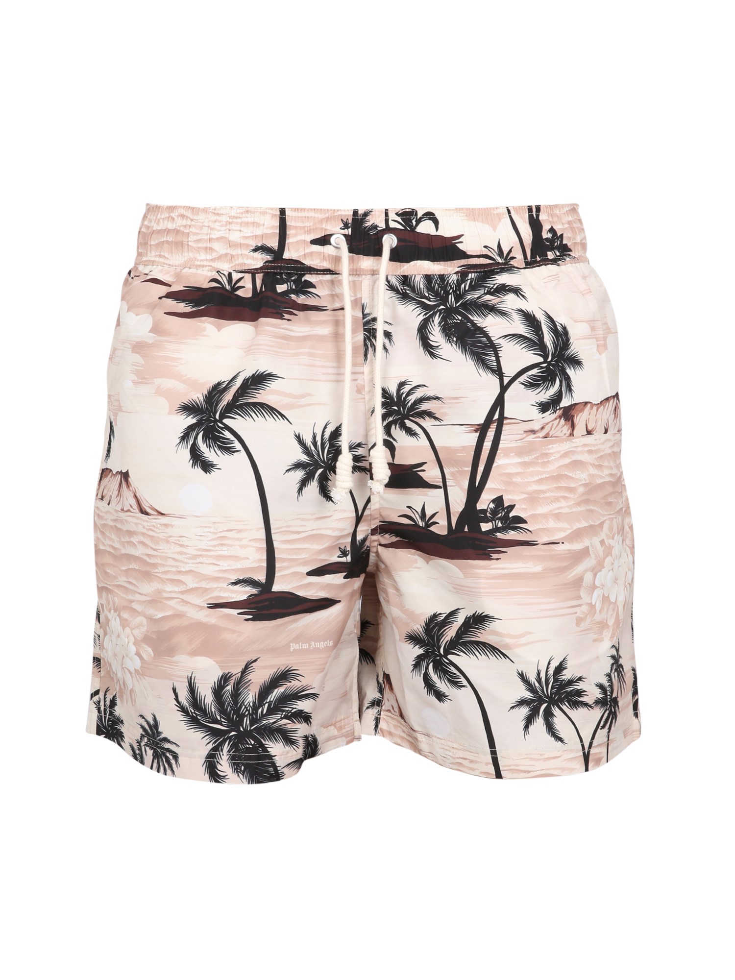 Il boxer da bagno Palm Angels ha una tasca posteriore, due tasche laterali e un elastico in vita che impedisce che si alzi. Ha uno stile boxer ed è composto da nylon. Questo costume da bagno, che ha un girovita elastico ed è realizzato in robusto nylon, è indispensabile per la spiaggia.
