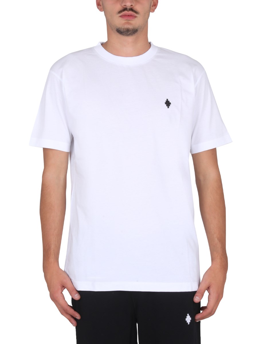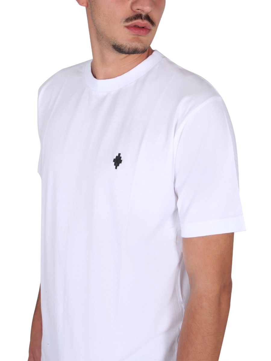 Per ravvivare il vostro look quotidiano, indossate una T-shirt in cotone della casa Marcelo Burlon County Of Milan. Lo scollo a giro e le maniche corte offrono la copertura perfetta per la primavera e l'estate. La t-shirt regular fit è comoda e presenta un ricamo con logo sul davanti.