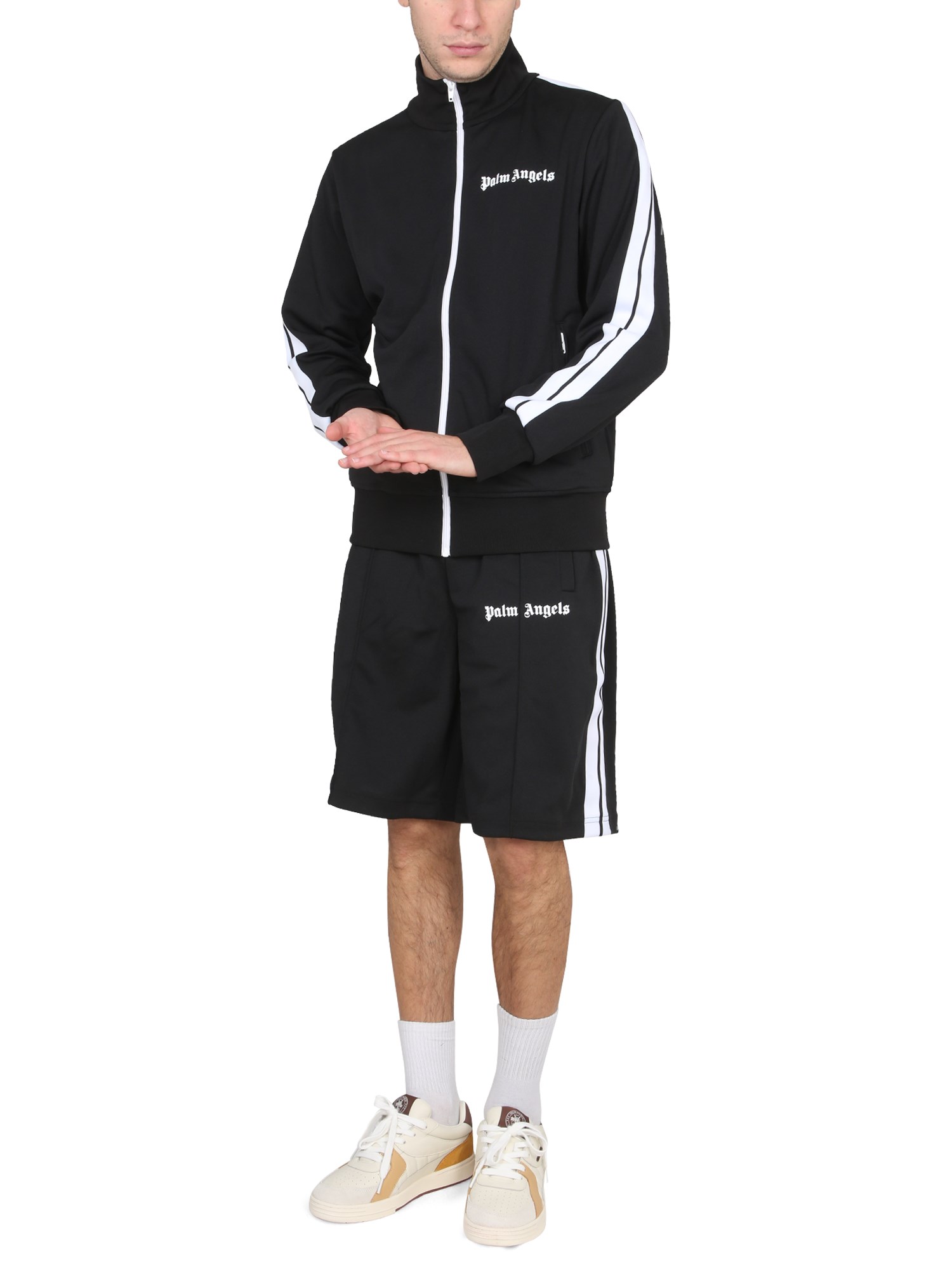 Questa giacca di Palm Angels è un must-have per ogni donna alla moda e, grazie al suo look elegante e alla sua forma classica, è un'aggiunta perfetta a qualsiasi armadio. È caratterizzata da collo alto, chiusura con cerniera, tasche con cerniera, polsini e orlo a coste elasticizzati, bande laterali iconiche e stampa frontale del logo.