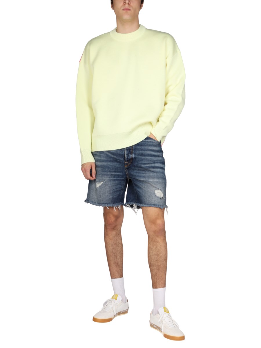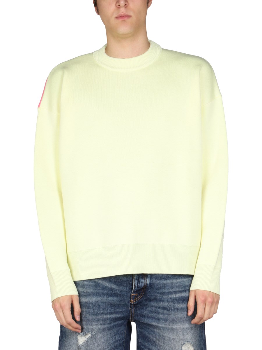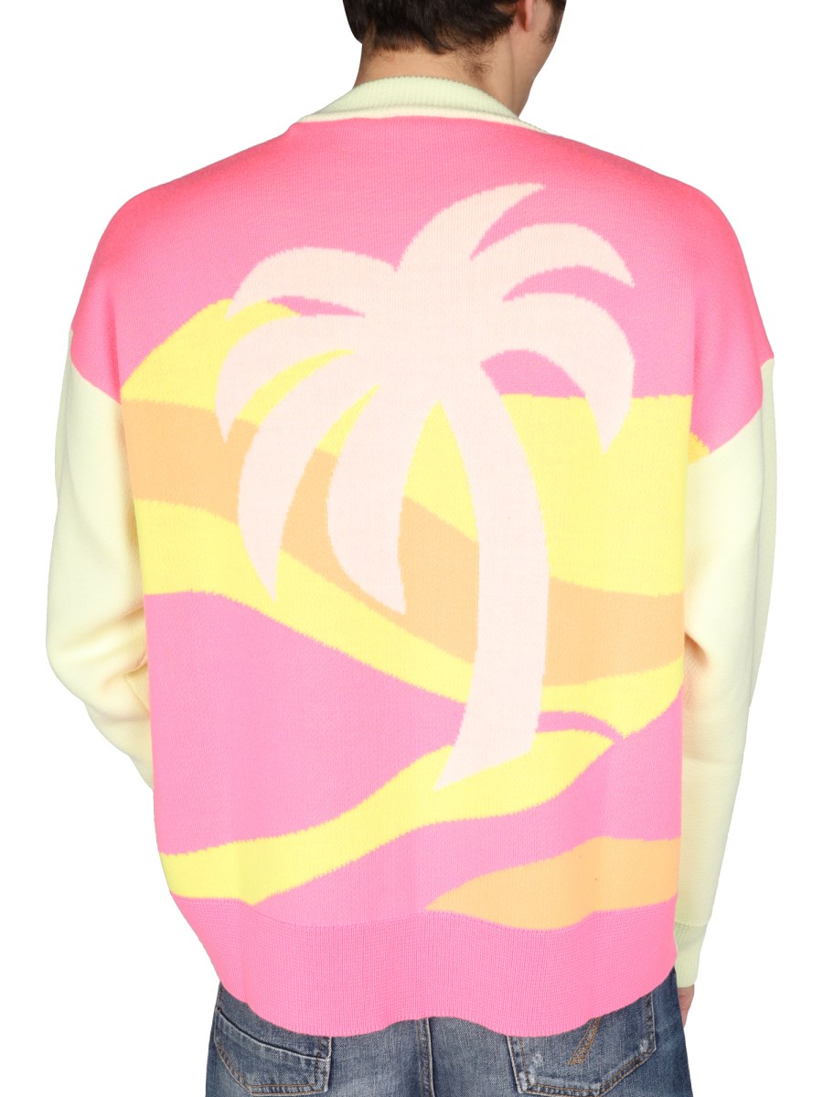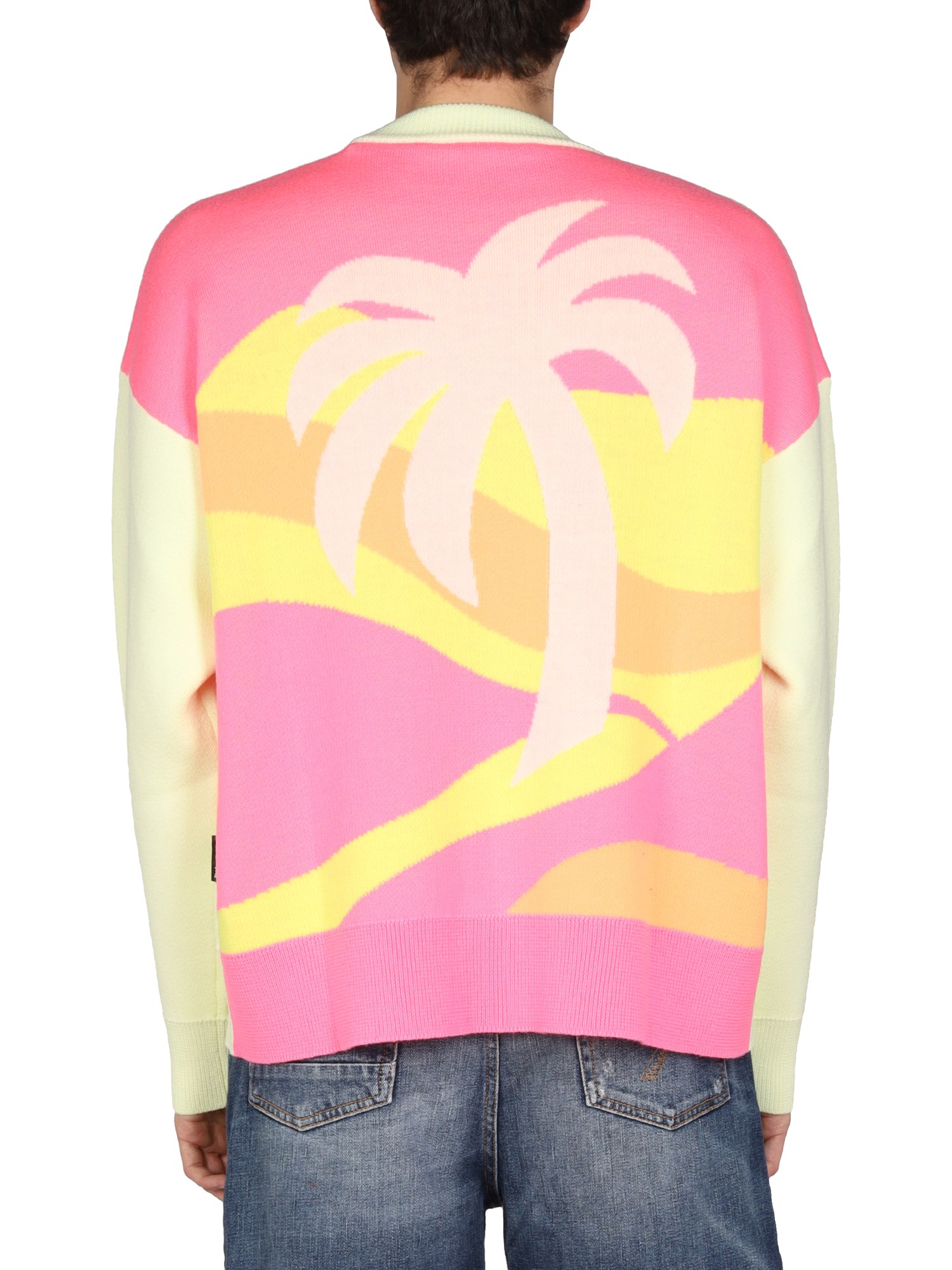 - GIROCOLLO- COLLO, POLSI E FONDO A COSTE- INTARSIO "PALM"- 100% LANA- MADE IN ITALY- IL MODELLO È ALTO 185 CM E INDOSSA LA TAGLIA M
