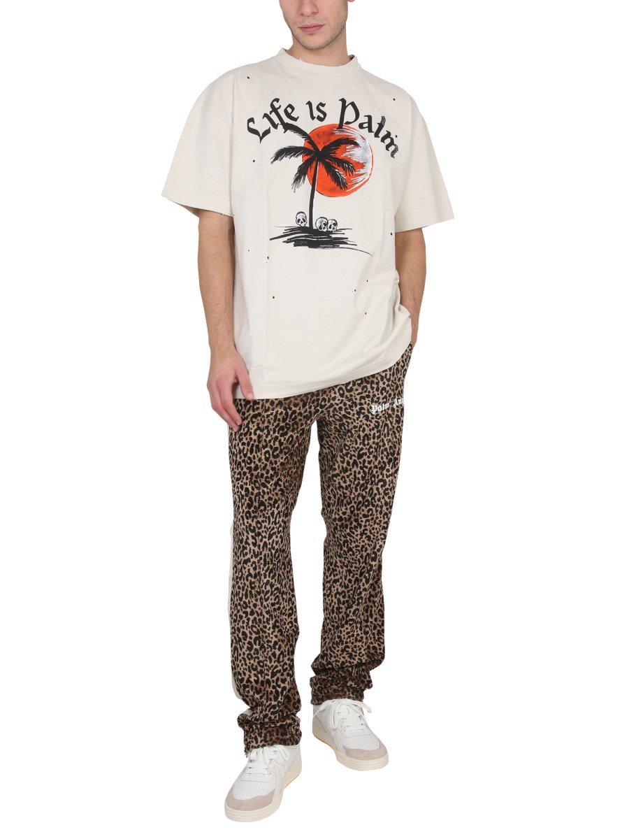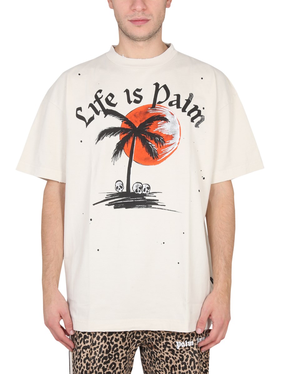 La t-shirt basic ma elegante della casa Palm Angels è leggera e traspirante, realizzata in tessuto di cotone. È comoda e morbida e offre una sensazione leggermente più casual. Ha una scollatura a girocollo, maniche corte e orlo dritto. La t-shirt, dalla vestibilità oversize, presenta una stampa del logo sul davanti.