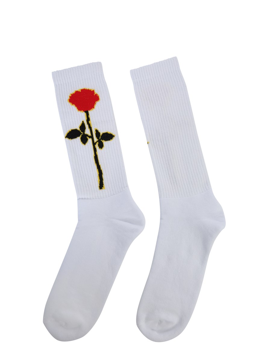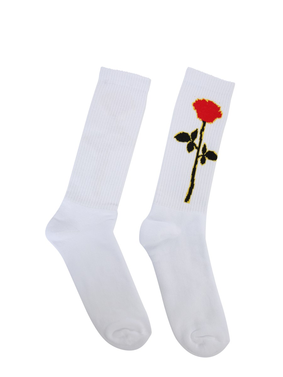 - GAMBALE ALTO- MOTIVO ROSA LATERALE- 90% COTONE, 5% ELASTAN, 5% POLIAMMIDE- MADE IN ITALY