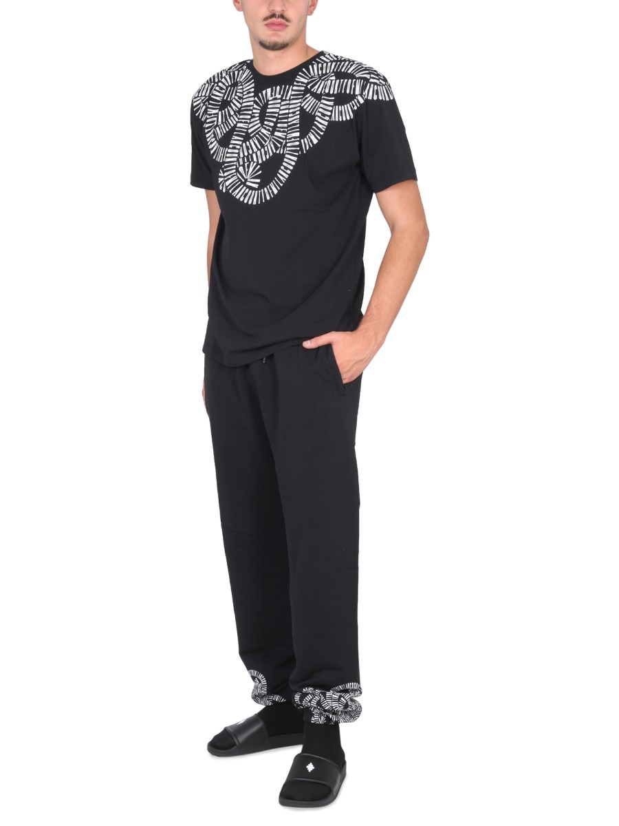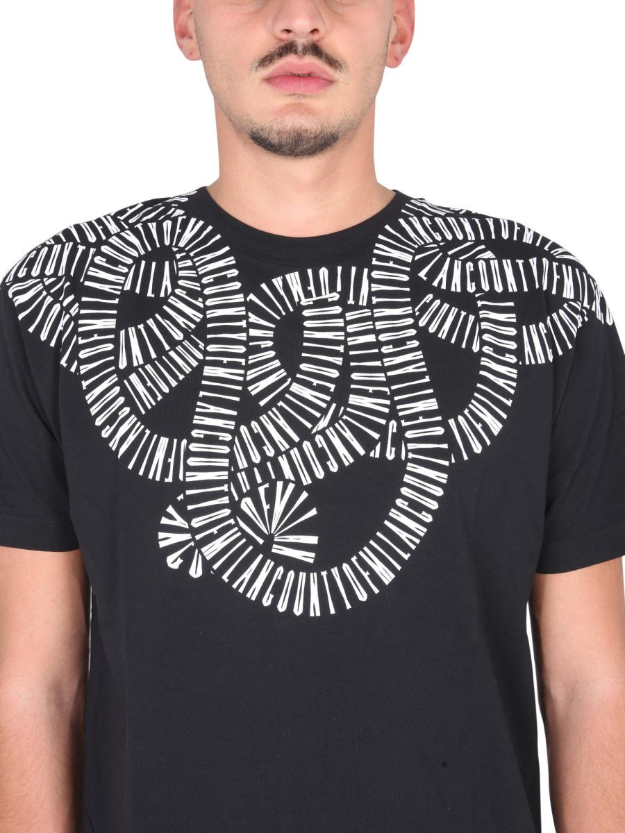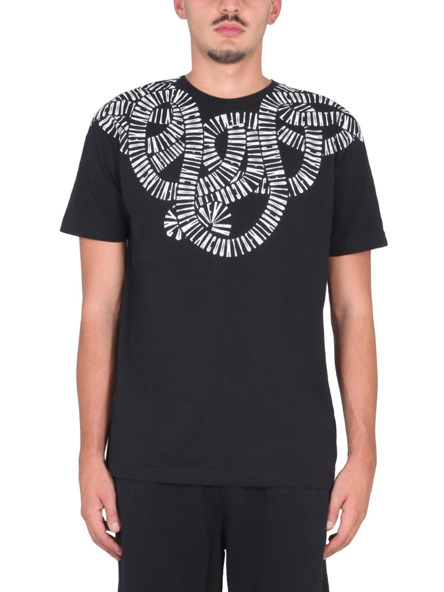 Godetevi il comfort della T-shirt in jersey di cotone della casa Marcelo Burlon County Of Milan. Ha una scollatura a girocollo, maniche corte e orlo dritto. Ha una vestibilità regolare per mantenere il comfort ed è ornata da una stampa unica sulle spalle.