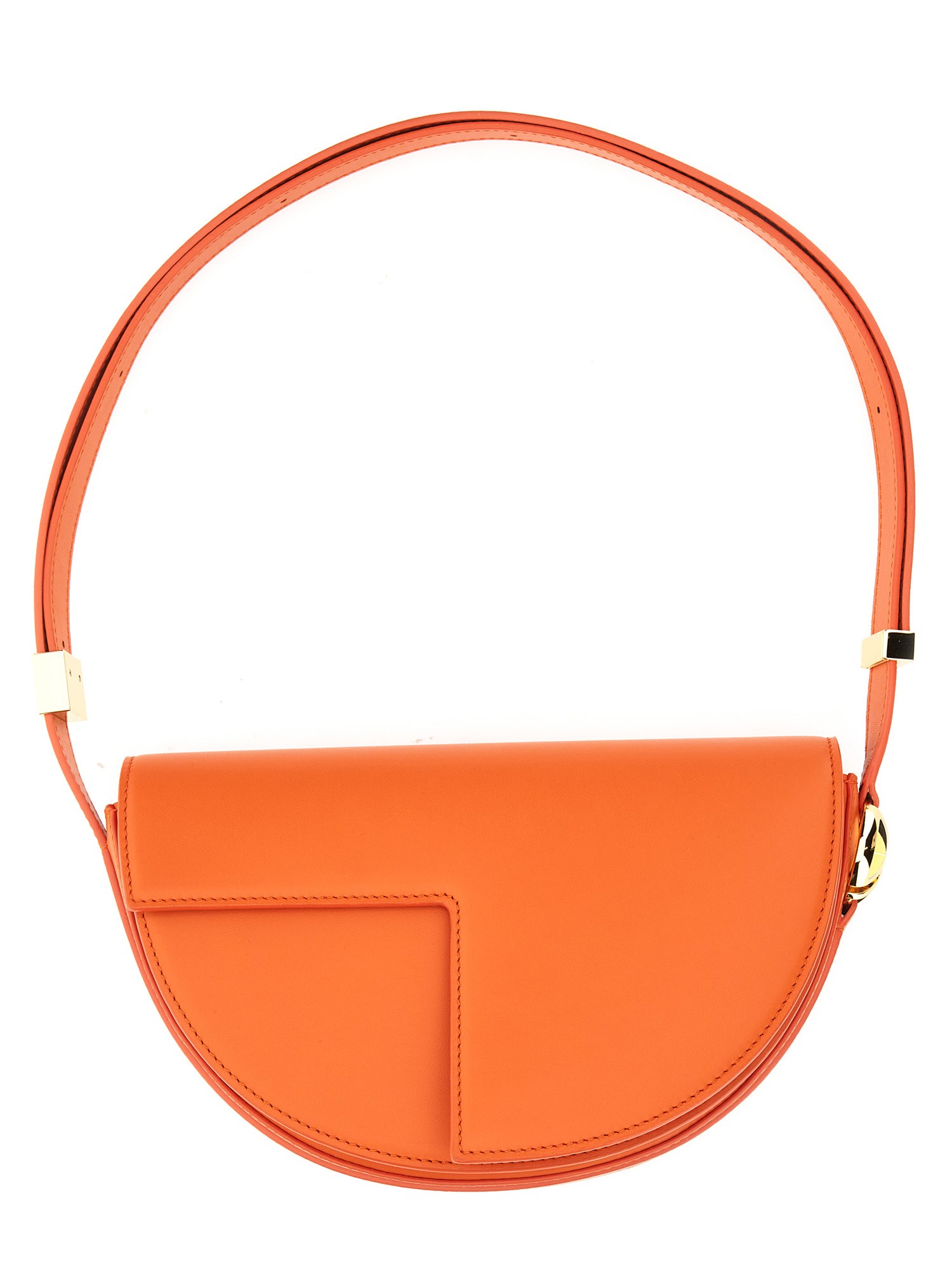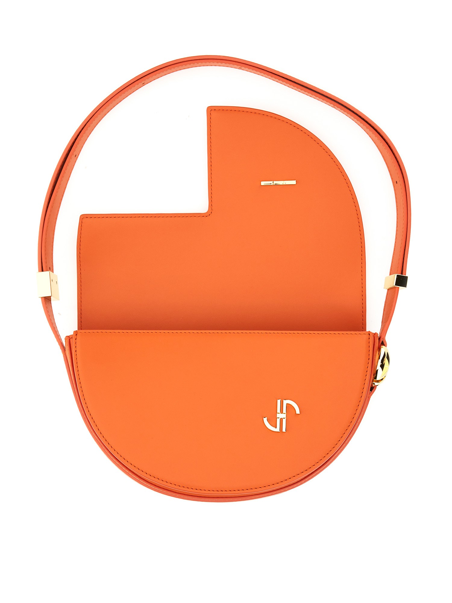 Borsa in pelle arancione Marigold. Realizzata con materiali unici provenienti da pellami di alta qualità non utilizzati. Forma a semicerchio con ritagli geometrici ispirati al monogramma JP. Accessori dorati con dettaglio del monogramma JP sul lato. Tracolla regolabile che permette di indossarla a spalla, sul corpo o a mano. Chiusura magnetica con dettaglio JP in oro. Scomparti multipli all'interno.