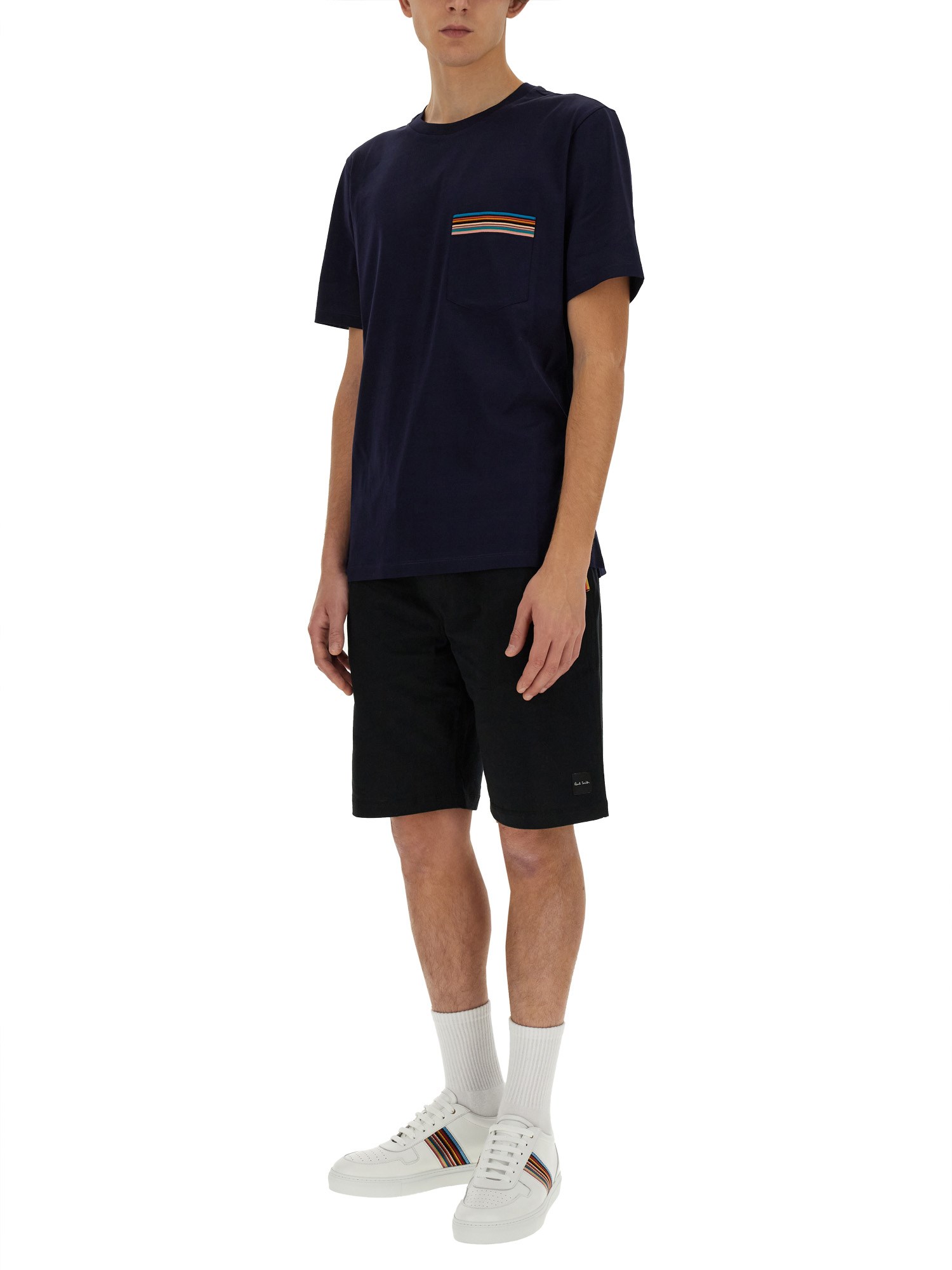 Questa T-shirt in cotone a girocollo di Paul Smith presenta un design classico con un tocco moderno. Il tessuto morbido e traspirante la rende comoda da indossare tutto il giorno, mentre l'iconico logo aggiunge un tocco di stile. Perfetta per le uscite casual o per essere indossata sotto una giacca, questa T-shirt è un'aggiunta versatile a qualsiasi guardaroba. Che si tratti di abbigliamento elegante o casual, questa T-shirt è un must-have per ogni individuo alla moda.