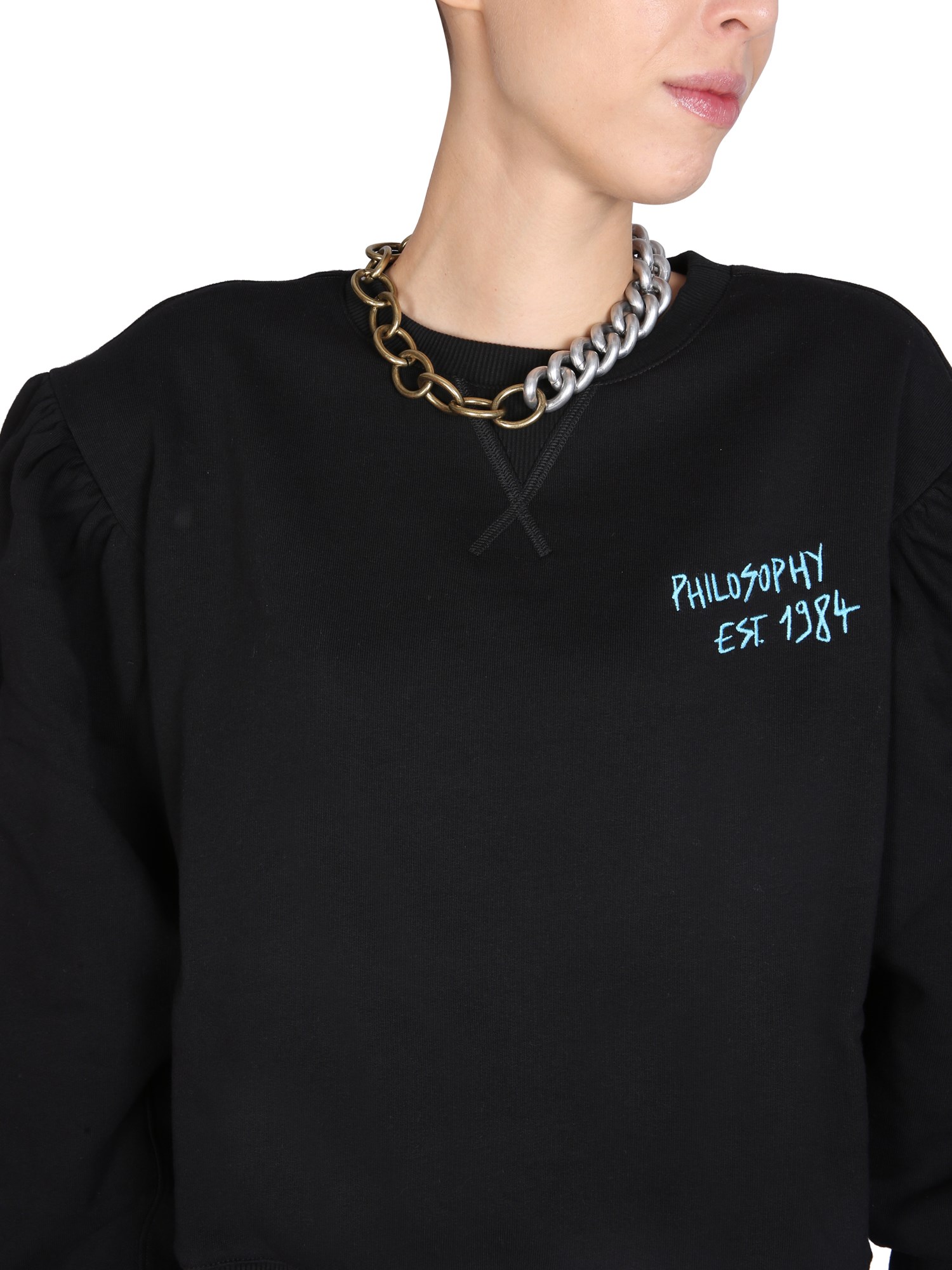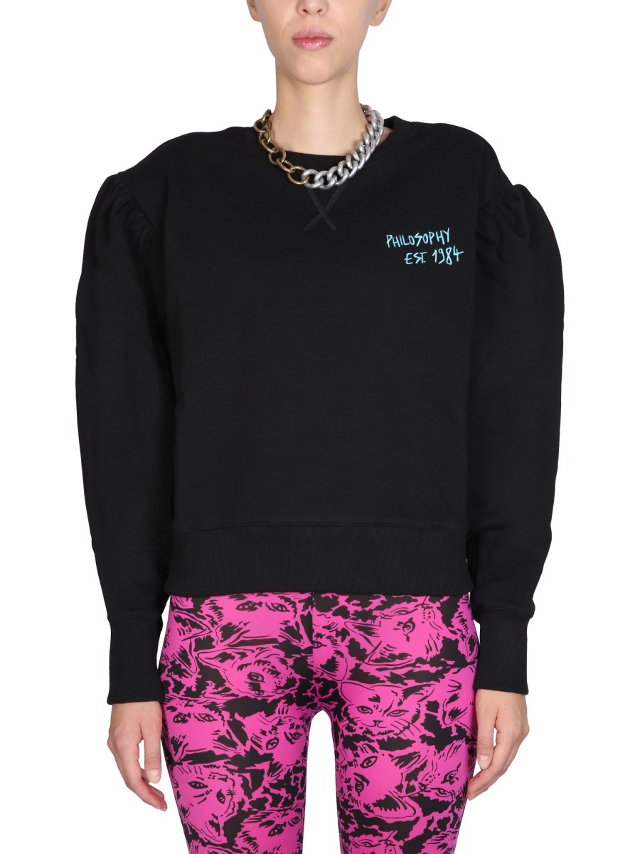 La felpa in cotone di Philosophy Di Lorenzo Serafini con ricamo del logo è un capo base per ogni guardaroba. La felpa è realizzata in 100% cotone e presenta un logo sulla parte anteriore sinistra del petto. È una maglietta comoda, morbida e calda che si può indossare al lavoro o nel weekend.
