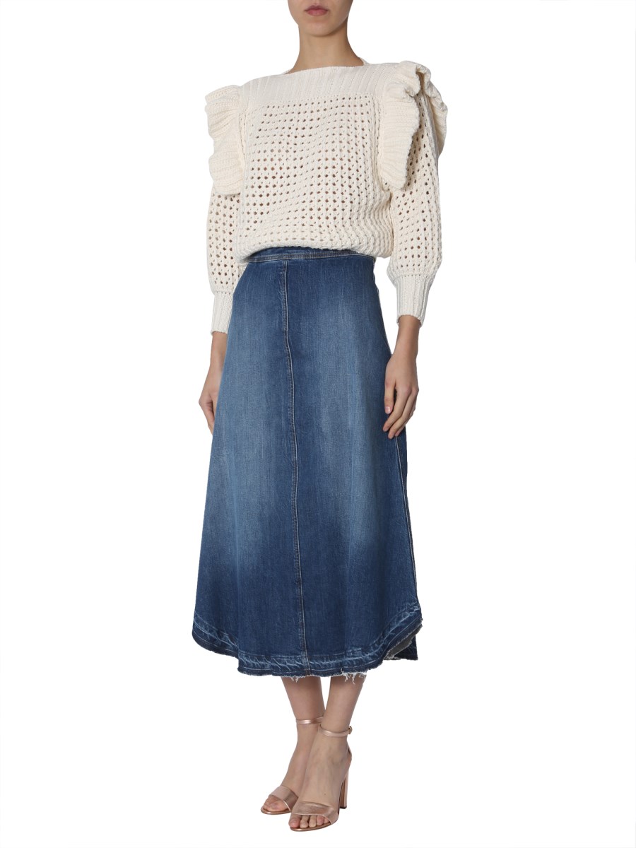 - CHIUSURA CON ZIP SUL RETRO- ORLO GREZZO- LUNGHEZZA: 85 CM- 98% COTONE, 2% ELASTAN - MADE IN ITALY- LA MODELLA INDOSSA LA TAGLIA 40