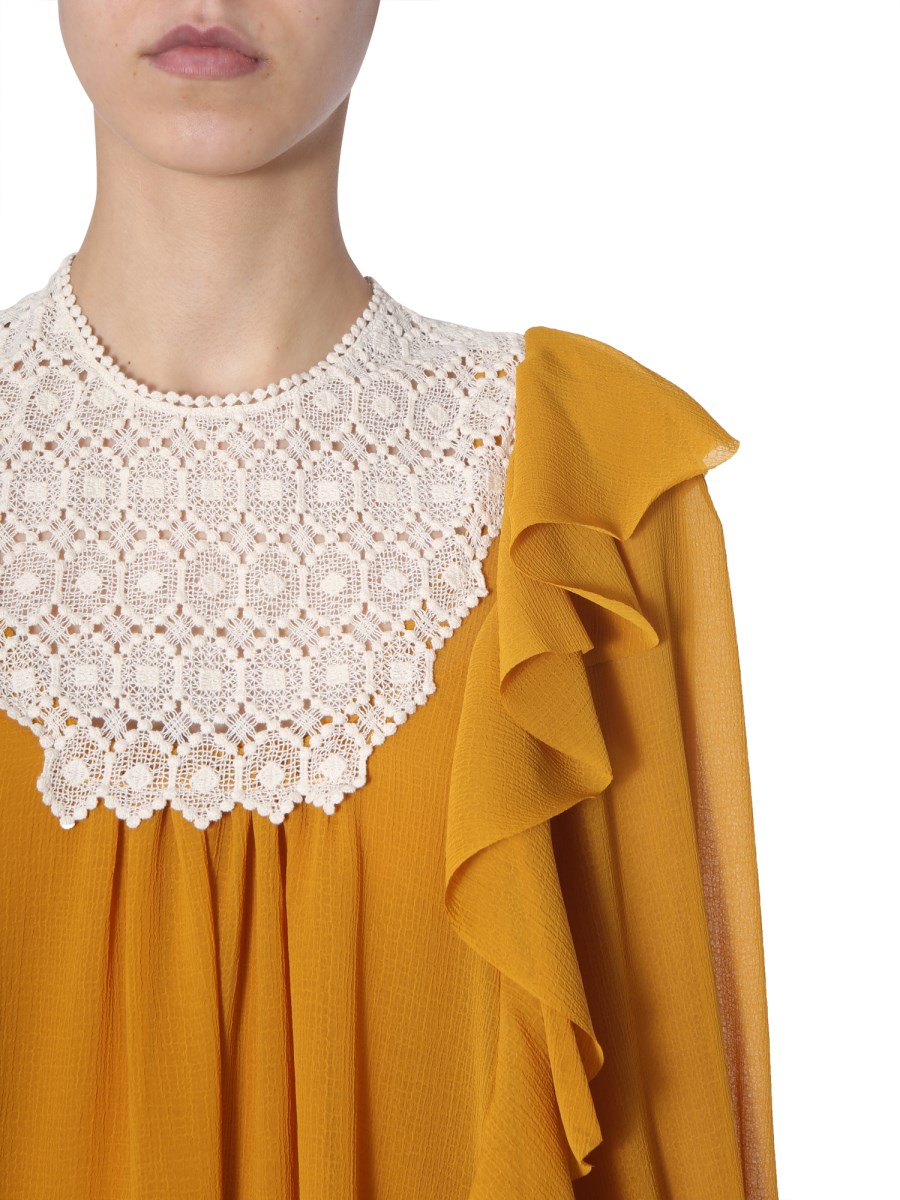 - GIROCOLLO- MANICHE LUNGHE- CHIUSURA CON BOTTONE SUL RETRO- INTERNO SFODERATO- 100% SETA- MADE IN ITALY- LA MODELLA INDOSSA LA TAGLIA 40