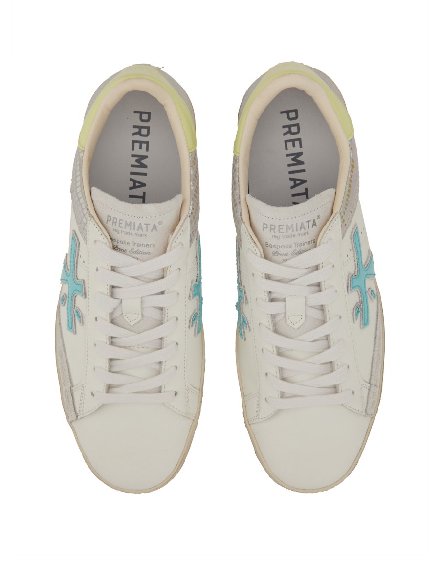 Queste sneakers di Premiata sono state progettate per elevare il vostro look quotidiano con un tocco di eleganza. La tomaia in pelle bianca di prima qualità offre un aspetto elegante e senza tempo, permettendo a queste sneakers di integrarsi perfettamente con qualsiasi abbigliamento. Che si tratti di fare commissioni o di passare la giornata a esplorare la città, queste sneakers vi manterranno comode e alla moda.