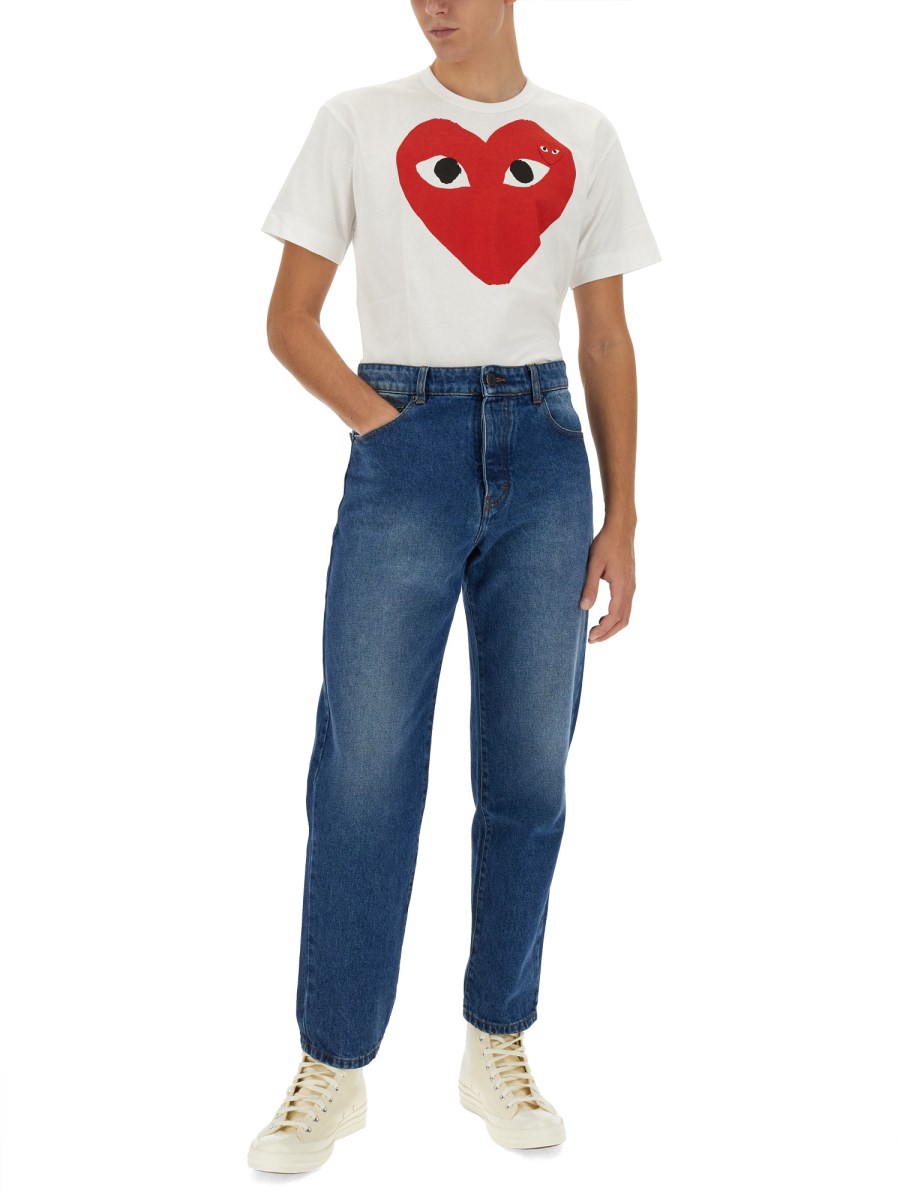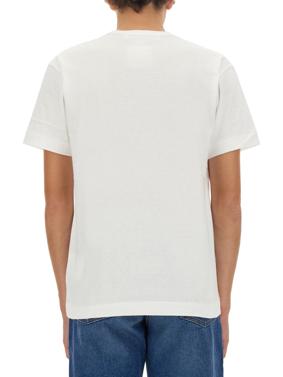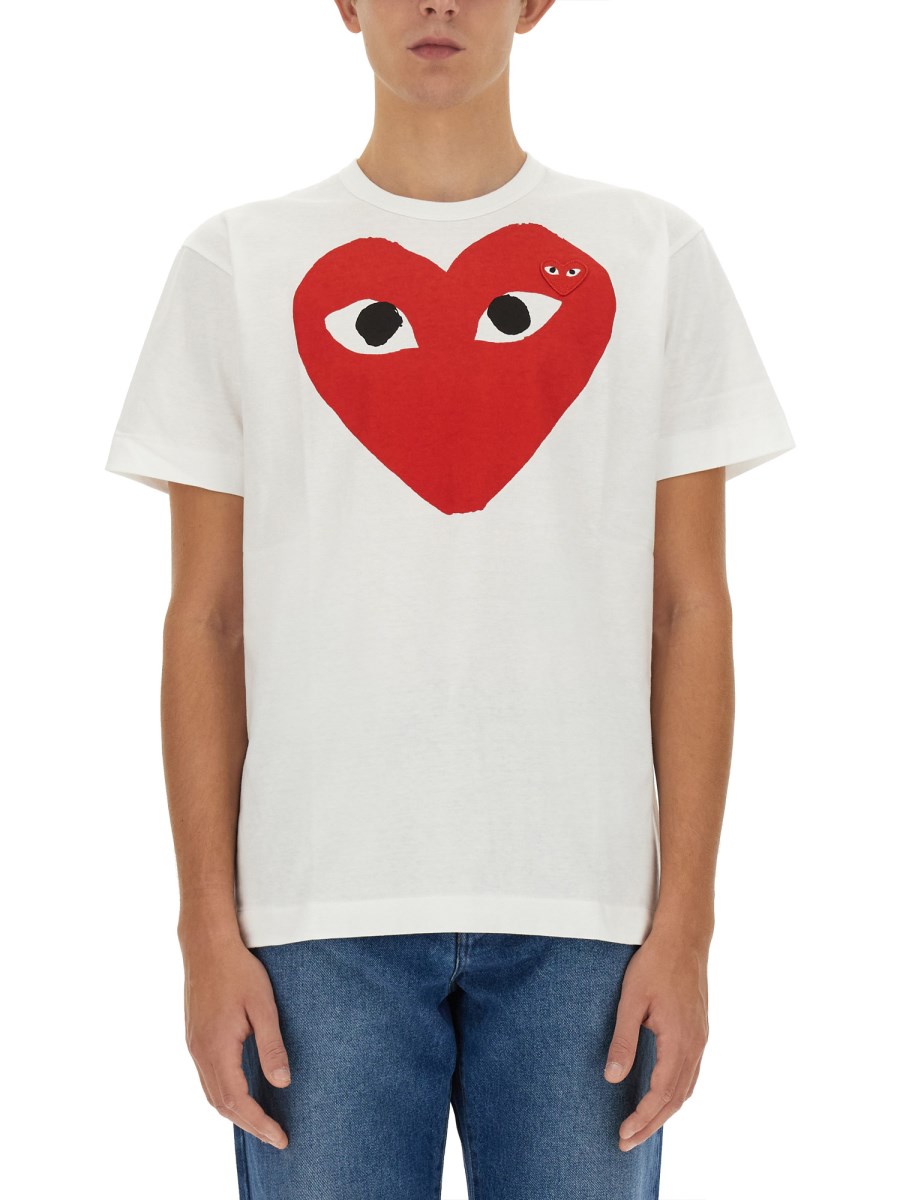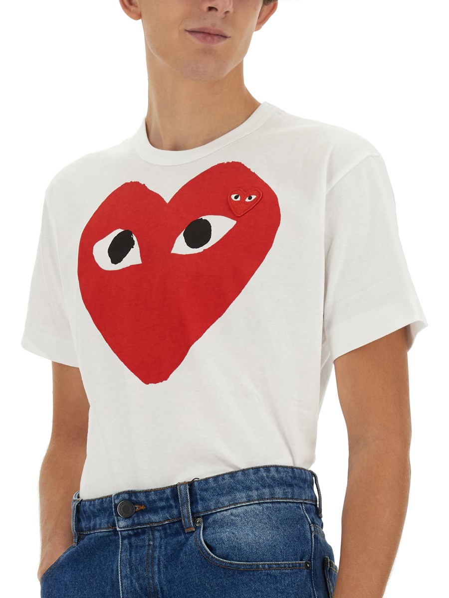 La T-shirt bianca a girocollo con grafica a cuore di Comme Des Garçons Play è il massimo della moda. Questa T-shirt, realizzata in cotone pregiato, non è solo morbida e traspirante, ma anche alla moda. L'intramontabile stile a girocollo è adatto a qualsiasi evento, mentre il motivo a cuori di tendenza vivacizzerà qualsiasi ensemble.