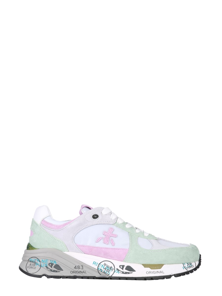 - SUOLA IN GOMMA EVA CON STAMPA: 4 CM - TOMAIA IN TESSUTO TECNICO E SUEDE - LACCI PIATTI - TALLONCINO IN PELLE - INTERNO IN PELLE- 48% PELLE, 30% POLIESTERE, 18% POLIAMMIDE, 2% ACRILICO, 2% METALLO