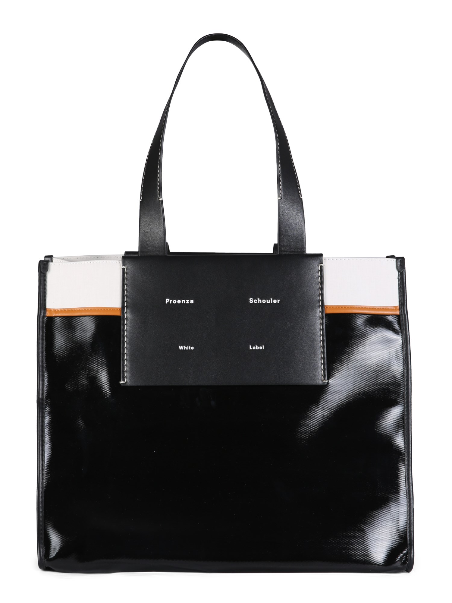 Questa borsa tote di Proenza Schouler White Label non solo è resistente, ma emana anche un'atmosfera trendy e alla moda. L'interno spazioso della borsa consente di trasportare tutti gli elementi essenziali con facilità, sia che si stia andando al supermercato, in palestra o semplicemente a fare delle commissioni. Grazie ai due comodi manici, questa tote bag offre una grande versatilità di trasporto: si può scegliere di portarla a spalla o di tenerla a mano, garantendo il massimo comfort per tutta la giornata.
