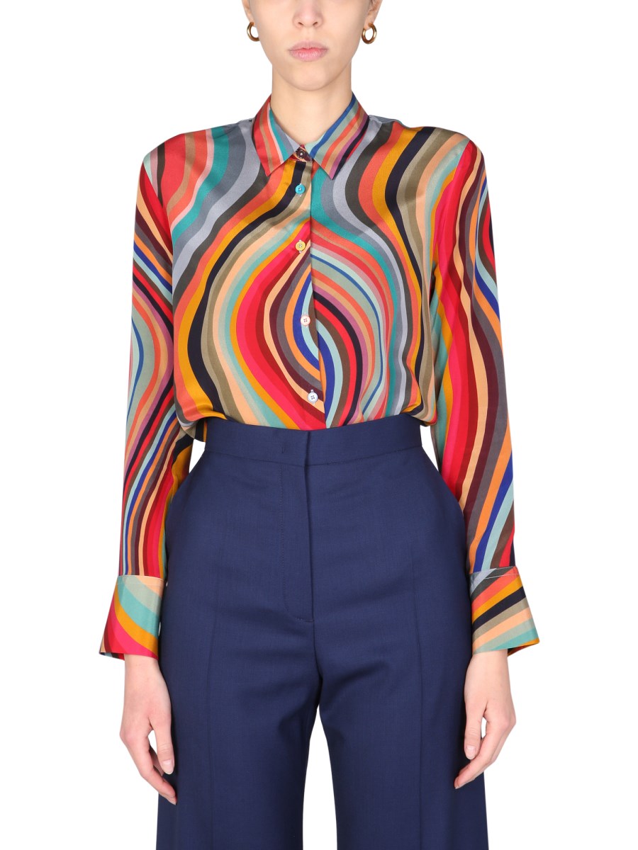 Classica ed elegante, la camicia "Swirl" in seta della maison PS by Paul Smith vi mantiene comode e alla moda in ogni occasione. La camicia ha un colletto a punta, maniche lunghe con polsino a un bottone, bordo curvo e chiusura con bottoni sul davanti. La camicia è impreziosita da una stampa multicolore che conferisce un look vivace.
