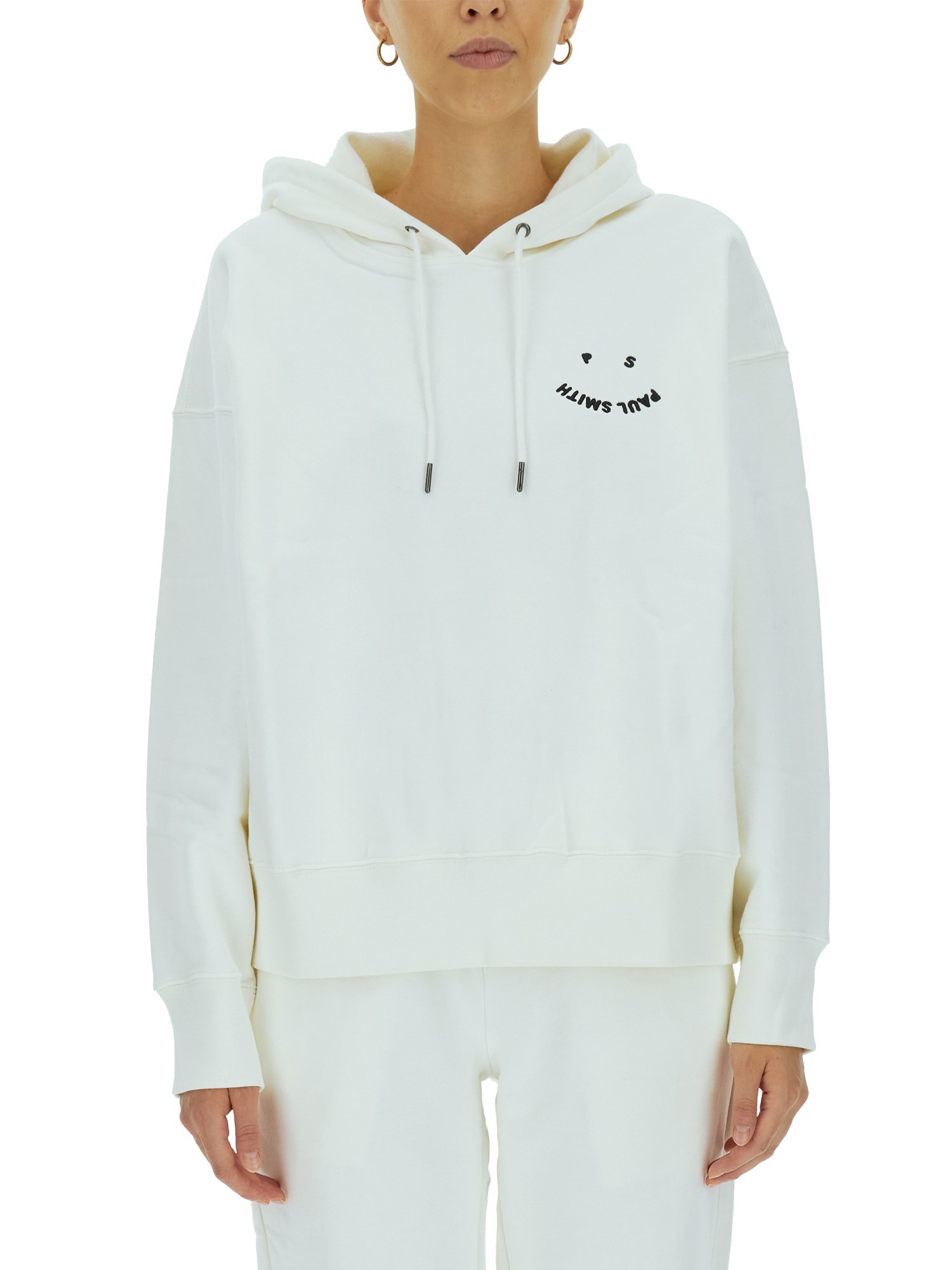 Per aumentare il vostro stile da brivido e godere di un comfort confortevole durante la giornata, indossate la felpa "Happy" di PS by Paul Smith. Caratterizzata da cappuccio con coulisse, polsini e fondo a coste e interno morbido e spazzolato. La felpa, dalla vestibilità regolare, è realizzata in puro cotone organico. Il ricamo frontale del logo aggiunge stile a questa felpa basic.