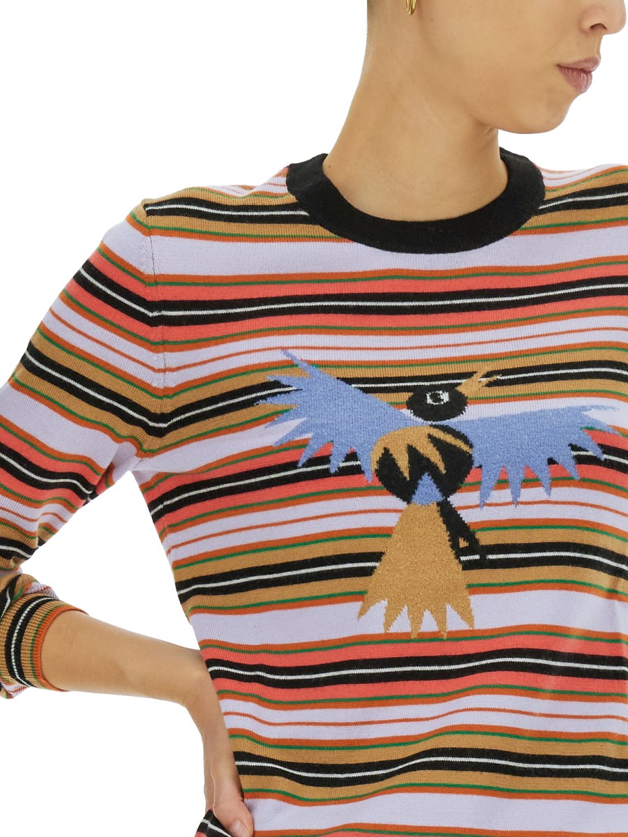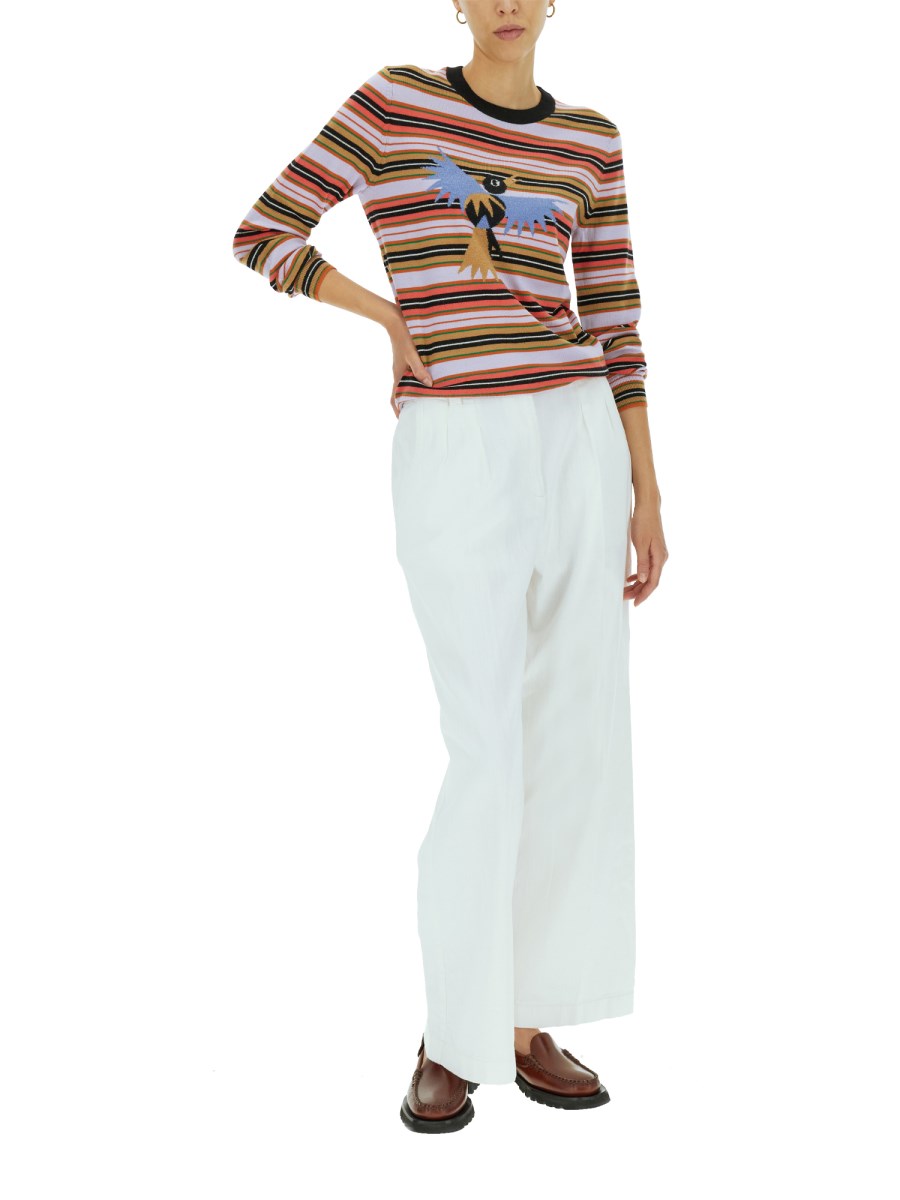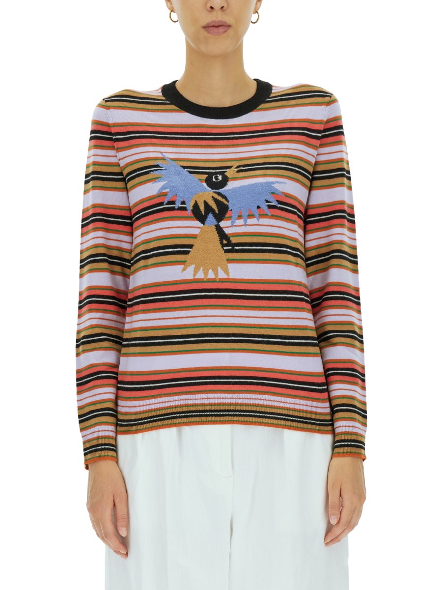 Attraversate i fine settimana con uno stile classico e casual indossando il maglione "Swallow Stencil" di PS by Paul Smith. Presenta un girocollo a contrasto, maniche lunghe e orlo dritto. Il maglione presenta un intarsio frontale "Swallow Stencil" e un motivo a righe su tutta la superficie.