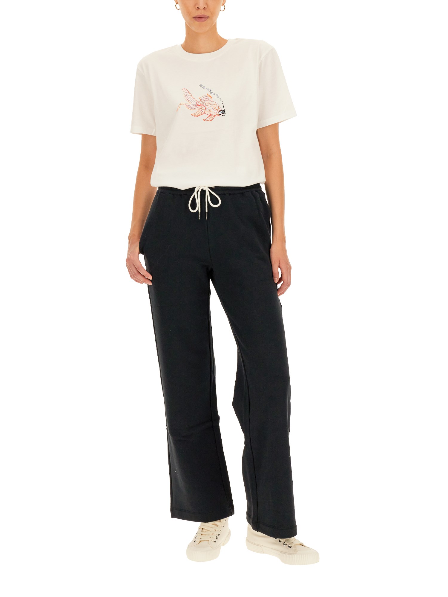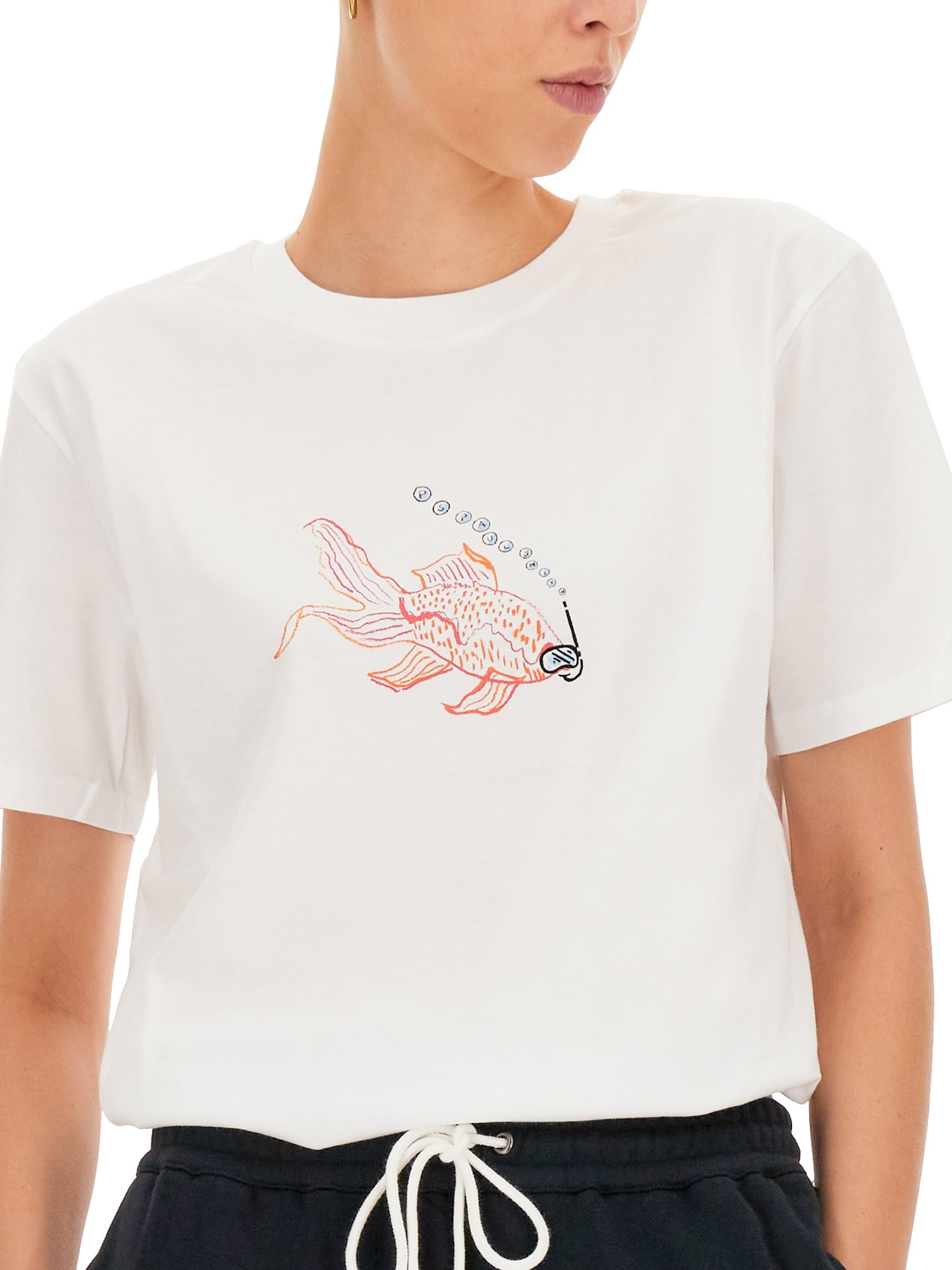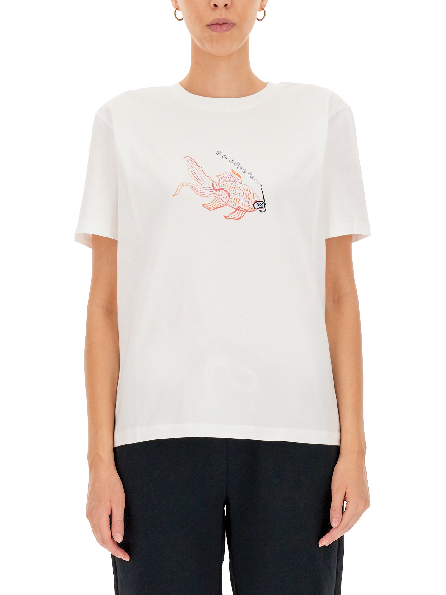 La T-shirt "Goldfish" in cotone organico di PS by Paul Smith è perfetta se abbinata a jeans in denim. Presenta scollo a giro, maniche corte, logo Goldfish applicato sul davanti e orlo dritto. La t-shirt, dalla vestibilità regolare, ha un taglio a strappo ed è realizzata in cotone organico e resistente.