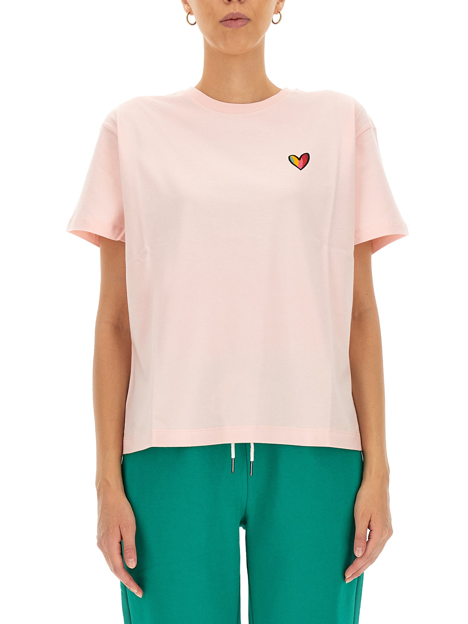 Preparatevi per il giorno della partita! La nuova T-shirt "Swirl Heart" in cotone asciutto della maison PS by Paul Smith è una maglietta grafica sportiva caratterizzata da un girocollo e da una maglia in jersey ultra-morbida per un comfort che dura tutto il giorno. Questa t-shirt dalla vestibilità regolare presenta una scollatura a volute, un orlo dritto e maniche corte.