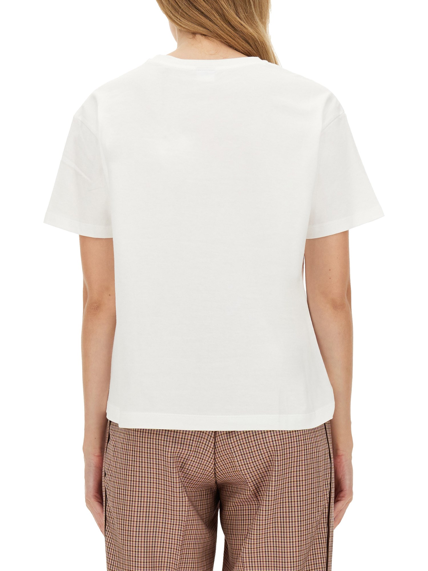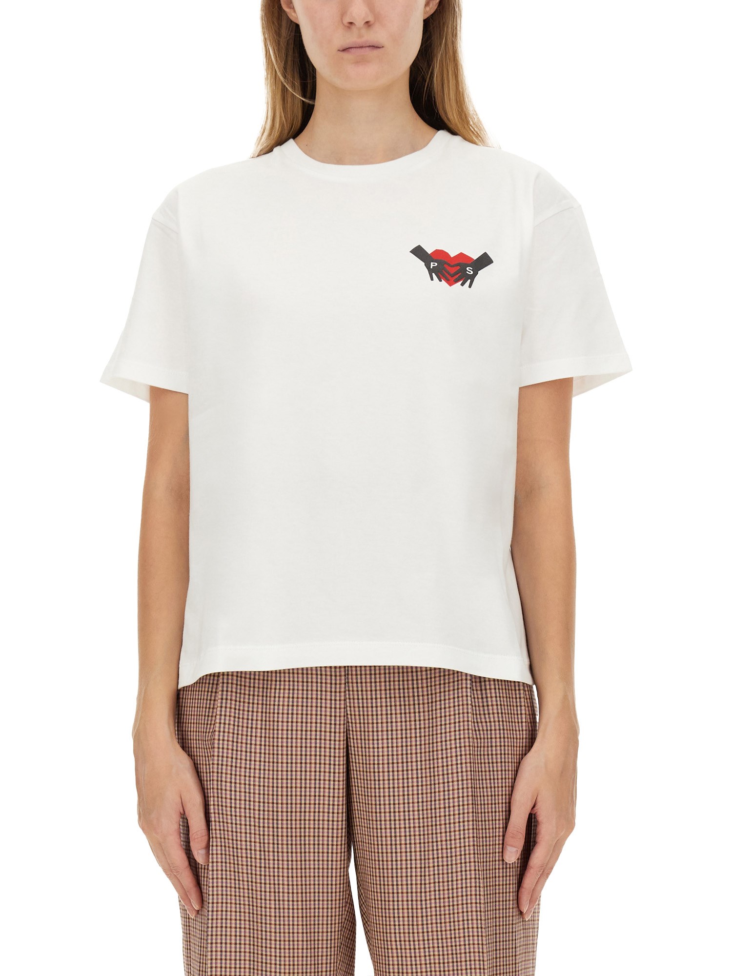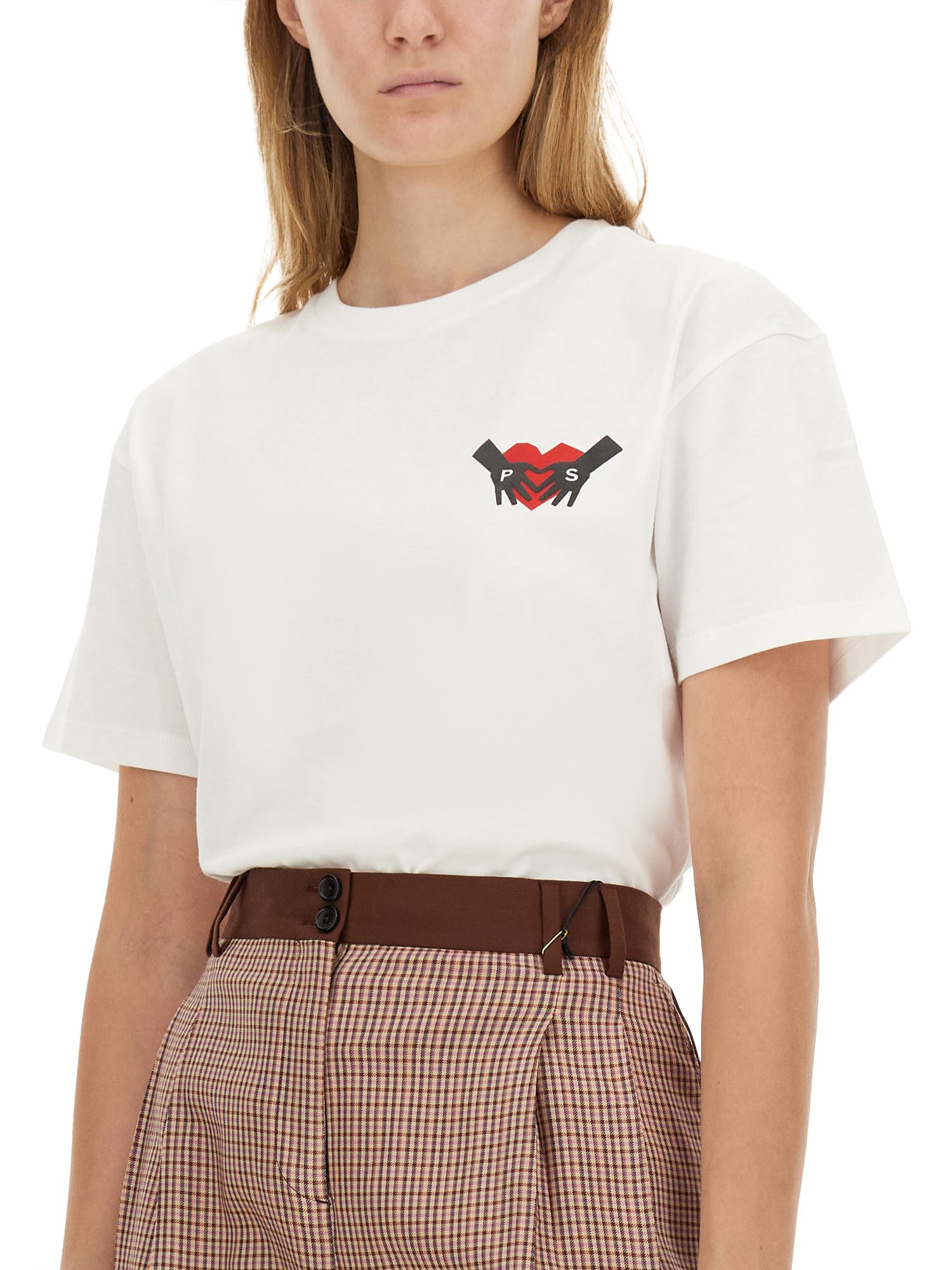 La T-shirt Cupid Arrow di PS by Paul Smith è un capo contemporaneo che fonde perfettamente lo stile casual con l'estro artistico. Realizzata in cotone di alta qualità, questa maglietta presenta la grafica di una freccia di Cupido, simbolo di amore e creatività. La vestibilità rilassata e la classica scollatura a girocollo garantiscono il comfort, rendendola adatta sia all'abbigliamento quotidiano che alle occasioni speciali. I colori vivaci e il design unico riflettono l'estetica tipica di Paul Smith e si rivolgono a persone alla moda che vogliono farsi notare.