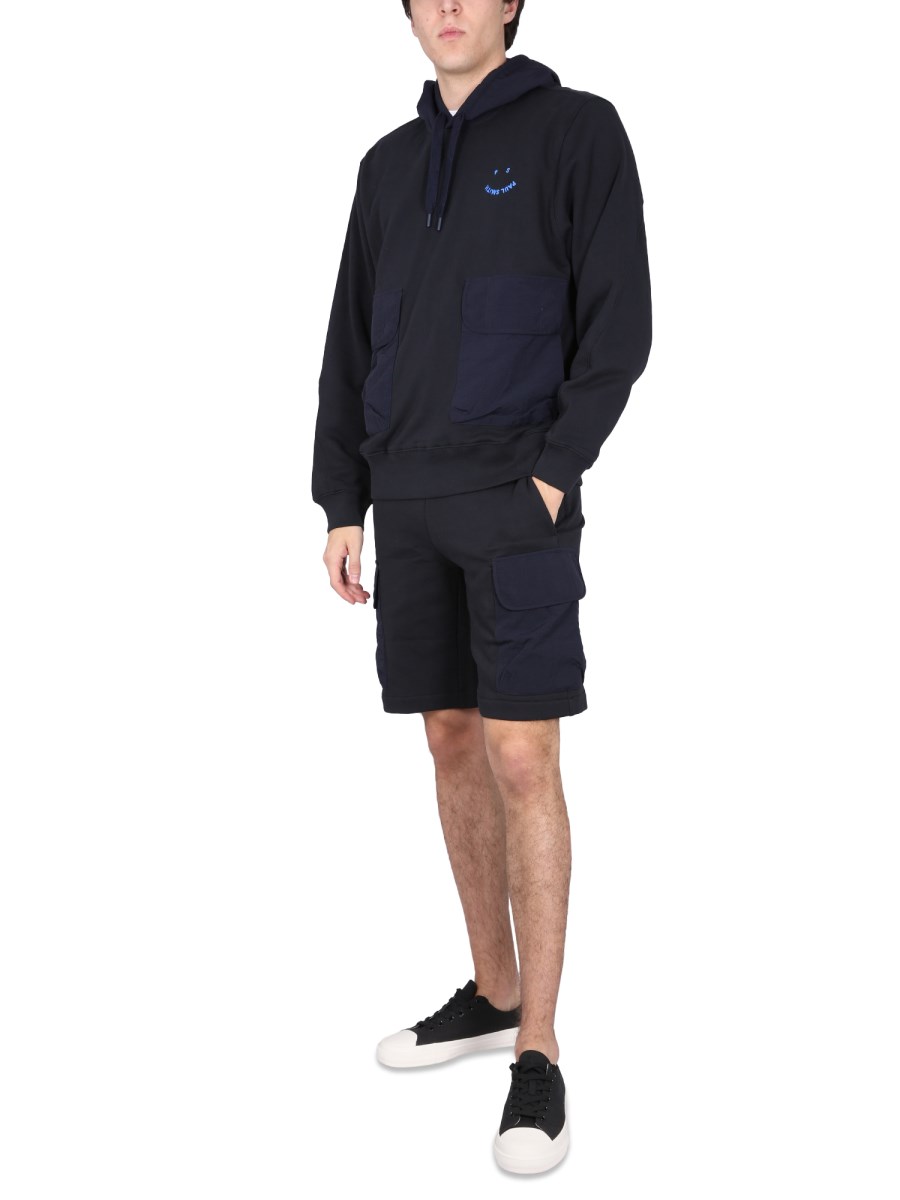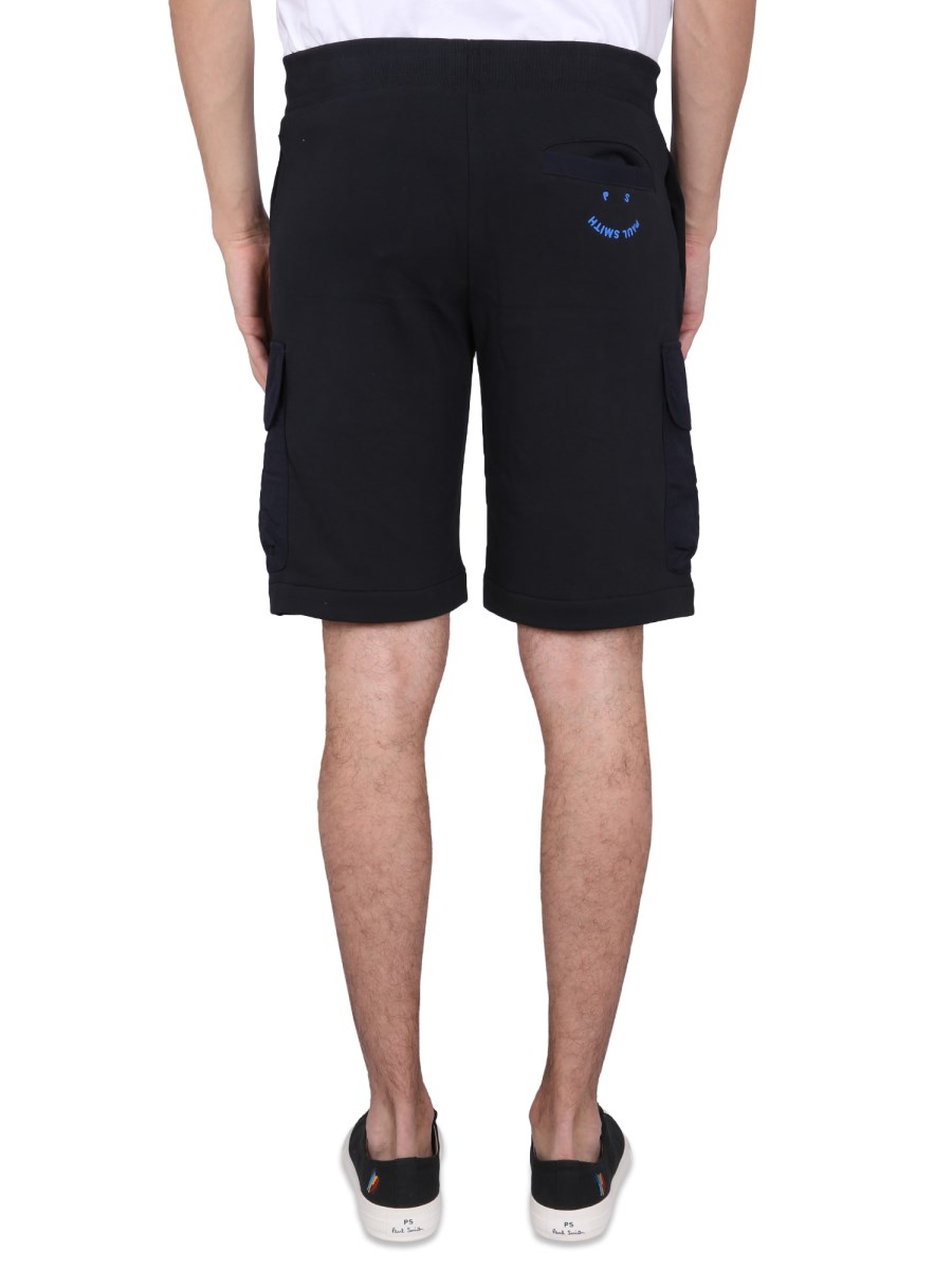 I bermuda di PS by Paul Smith sono realizzati in un materiale di cotone leggero e traspirante, ideale per le calde giornate estive. Questi pantaloncini hanno un design a cinque tasche con chiusura a cerniera e due tasche cargo sul fondo. Hanno inoltre una vestibilità regolare. Questi pantaloncini sono un vero e proprio capo d'abbigliamento estivo!