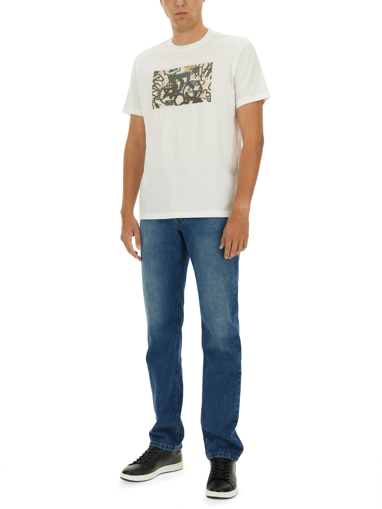 La T-shirt PS by Paul Smith presenta una stampa distintiva che incarna lo stile caratteristico del marchio, combinando un design contemporaneo con elementi classici. Realizzata con materiali di alta qualità, questa T-shirt garantisce comfort e durata, rendendola un'aggiunta versatile a qualsiasi guardaroba. Ideale per le uscite casual o per i contesti più rilassati, presenta un'estetica unica che si rivolge agli individui più attenti alla moda. Elevate il vostro look quotidiano con questo capo elegante che riflette la creatività e l'artigianalità sinonimo di Paul Smith.