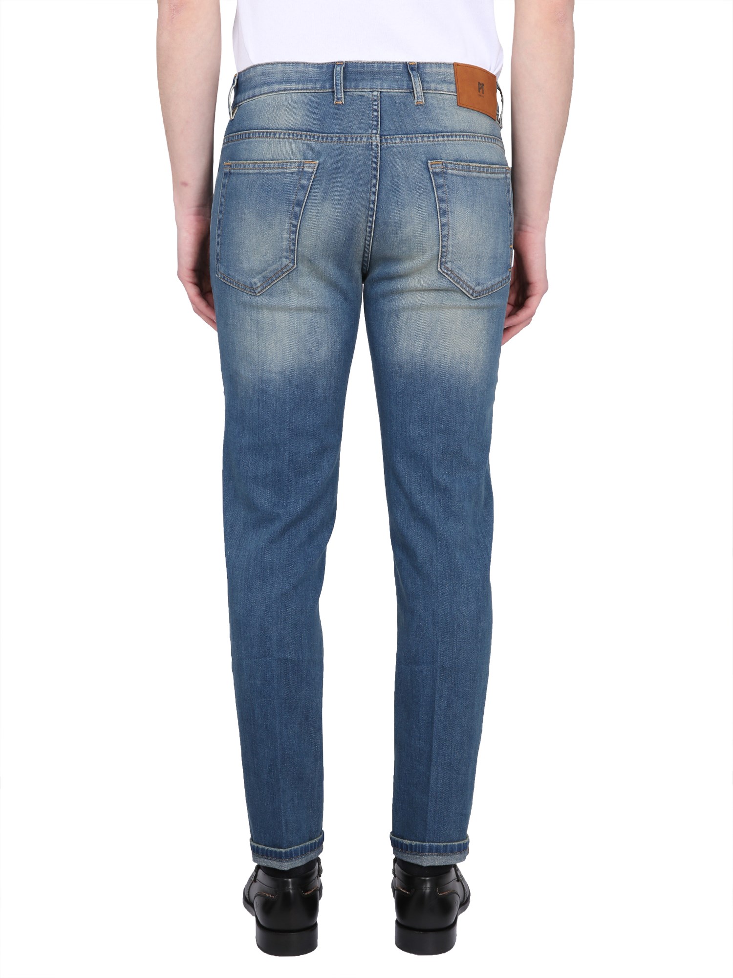 Questo è un paio di jeans di PT Torino in misto cotone con elastan, molto comodi. La chiusura con bottone e cerniera sulle due tasche laterali facilita l'ingresso e l'uscita delle mani dalle tasche. Le tasche posteriori sono ampie e hanno anch'esse una chiusura a cerniera. La vestibilità rilassata è perfetta per i giorni in cui si desidera indossare un paio di jeans e partire.