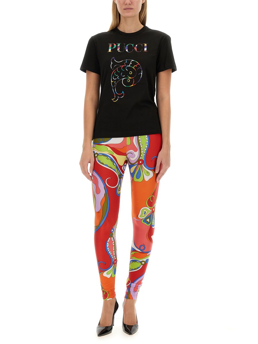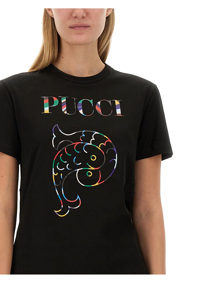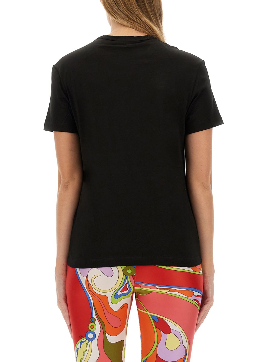 Questa T-shirt con logo Pucci combina uno stile contemporaneo con un marchio classico, rendendola un'aggiunta versatile a qualsiasi guardaroba. Realizzata in tessuto di alta qualità, offre comfort e durata, mentre l'iconico logo in evidenza ne esalta il fascino alla moda. Ideale per le uscite casual o come capo d'effetto, questa T-shirt eleva senza sforzo l'abbigliamento di tutti i giorni.