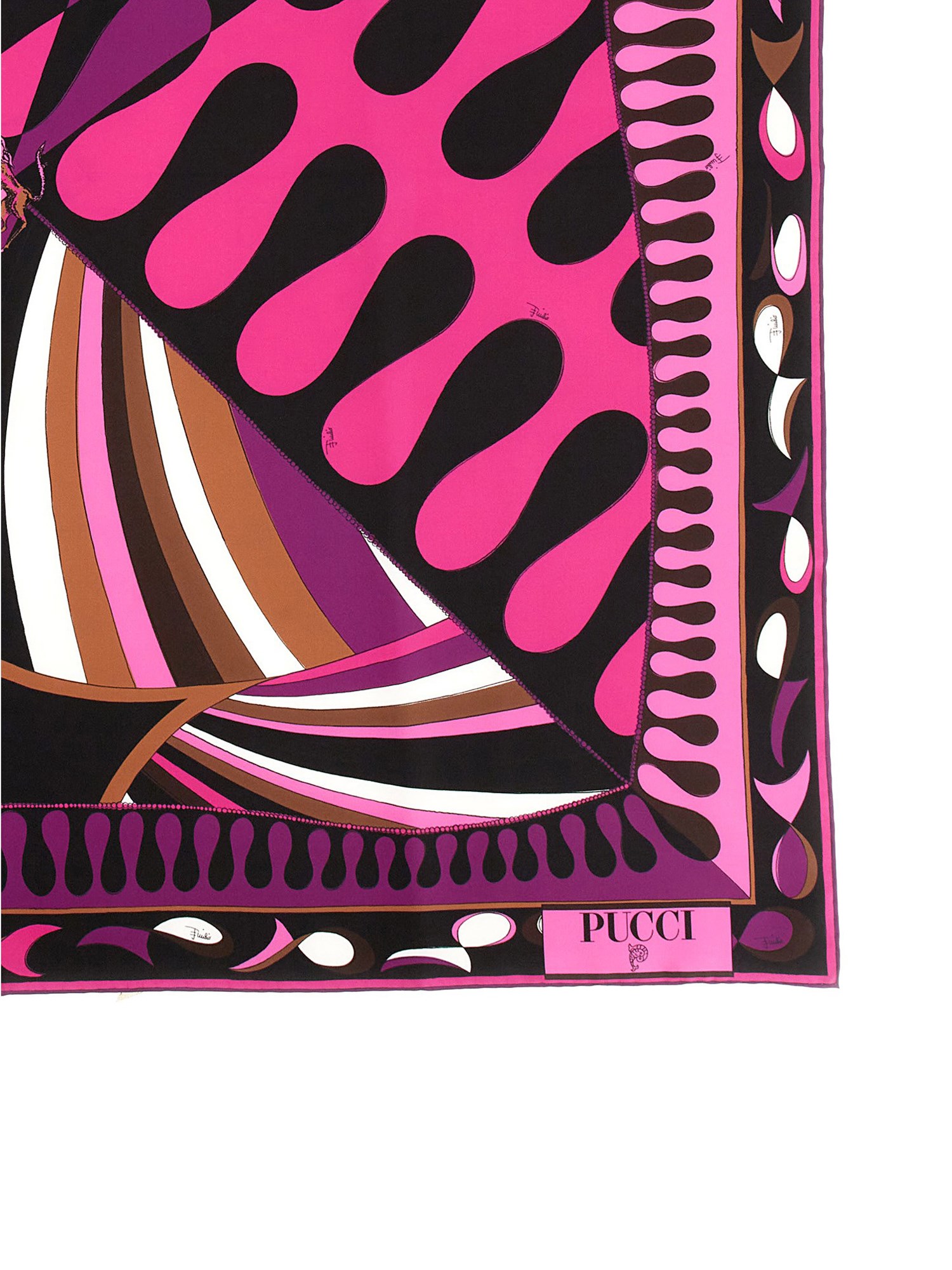 Avvolgetevi nel lusso con questa bellissima sciarpa di forma quadrata di Pucci. Realizzata in seta, questa sciarpa non è solo elegante ma anche incredibilmente morbida al tatto. Caratterizzata da un design accattivante, questa sciarpa è in grado di elevare qualsiasi outfit e di far girare la testa ovunque si vada.
