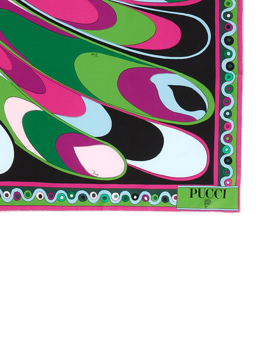 Questa splendida sciarpa di Pucci unisce stile e comfort. La stampa intricata sul tessuto dona un tocco di raffinatezza e arte a qualsiasi abbigliamento. Il design multicolore di questa sciarpa la rende un accessorio versatile che può essere abbinato a una vasta gamma di colori e stili.