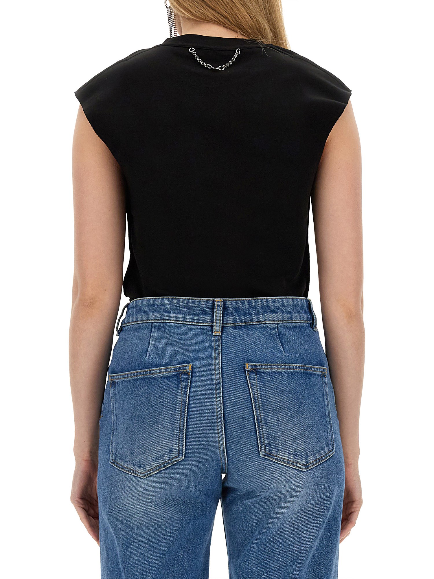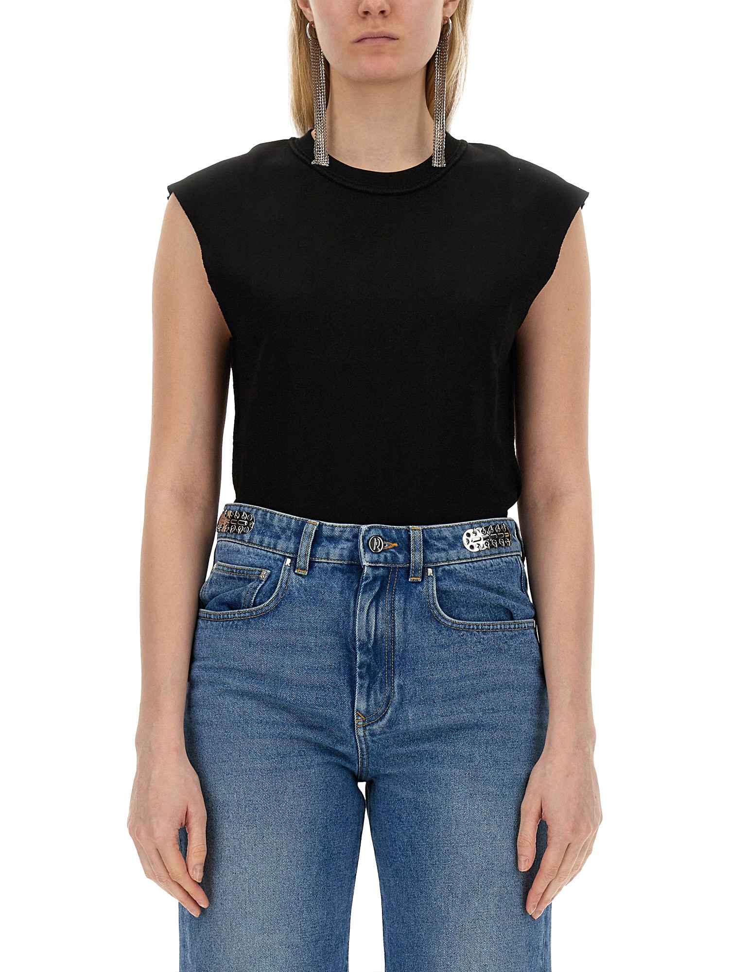 Questa T-shirt di Rabbane offre comfort e stile. Realizzata in materiale di cotone di alta qualità, offre una sensazione di morbidezza e di liscio sulla pelle. Il design a girocollo aggiunge un tocco di eleganza, mentre il taglio senza maniche consente la massima libertà di movimento. Il classico colore nero è versatile e facile da abbinare a qualsiasi fondo, rendendolo un'opzione da scegliere sia per le occasioni casual che per quelle più eleganti.