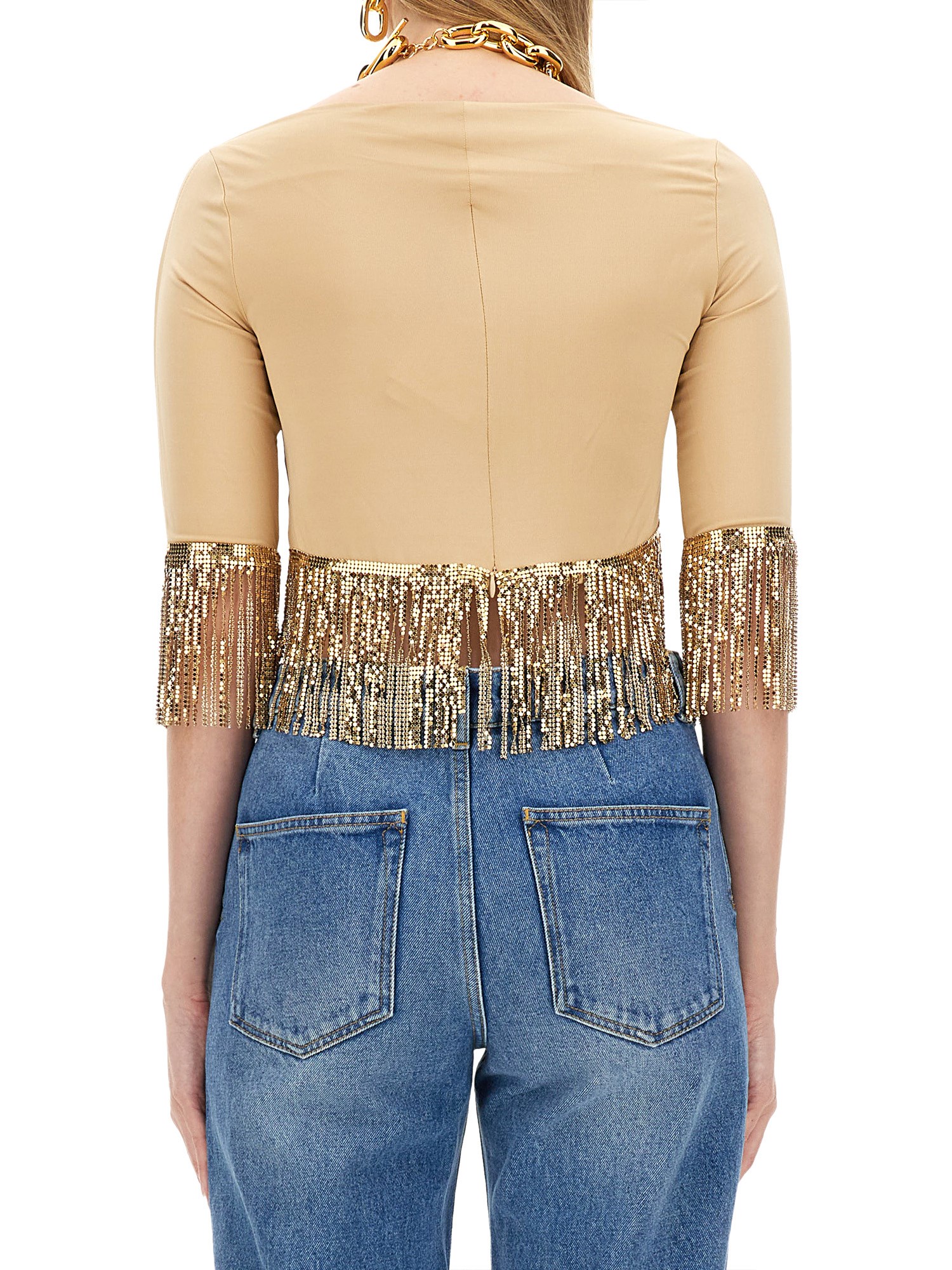 Il top Rabanne con frange offre un mix contemporaneo di stile e raffinatezza, con un design unico che accentua il viso e offre una silhouette chic. Realizzato con materiali di alta qualità, questo top garantisce comfort e durata, rendendolo adatto sia alle occasioni casual che a quelle formali. L'innovativo dettaglio della frangia aggiunge un tocco giocoso ma elegante, consentendo opzioni di stile versatili. Ideale per le persone alla moda, questo pezzo incarna un'estetica moderna pur mantenendo un fascino senza tempo.