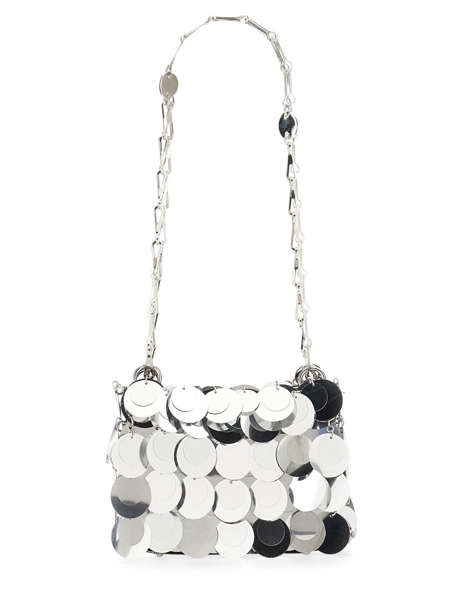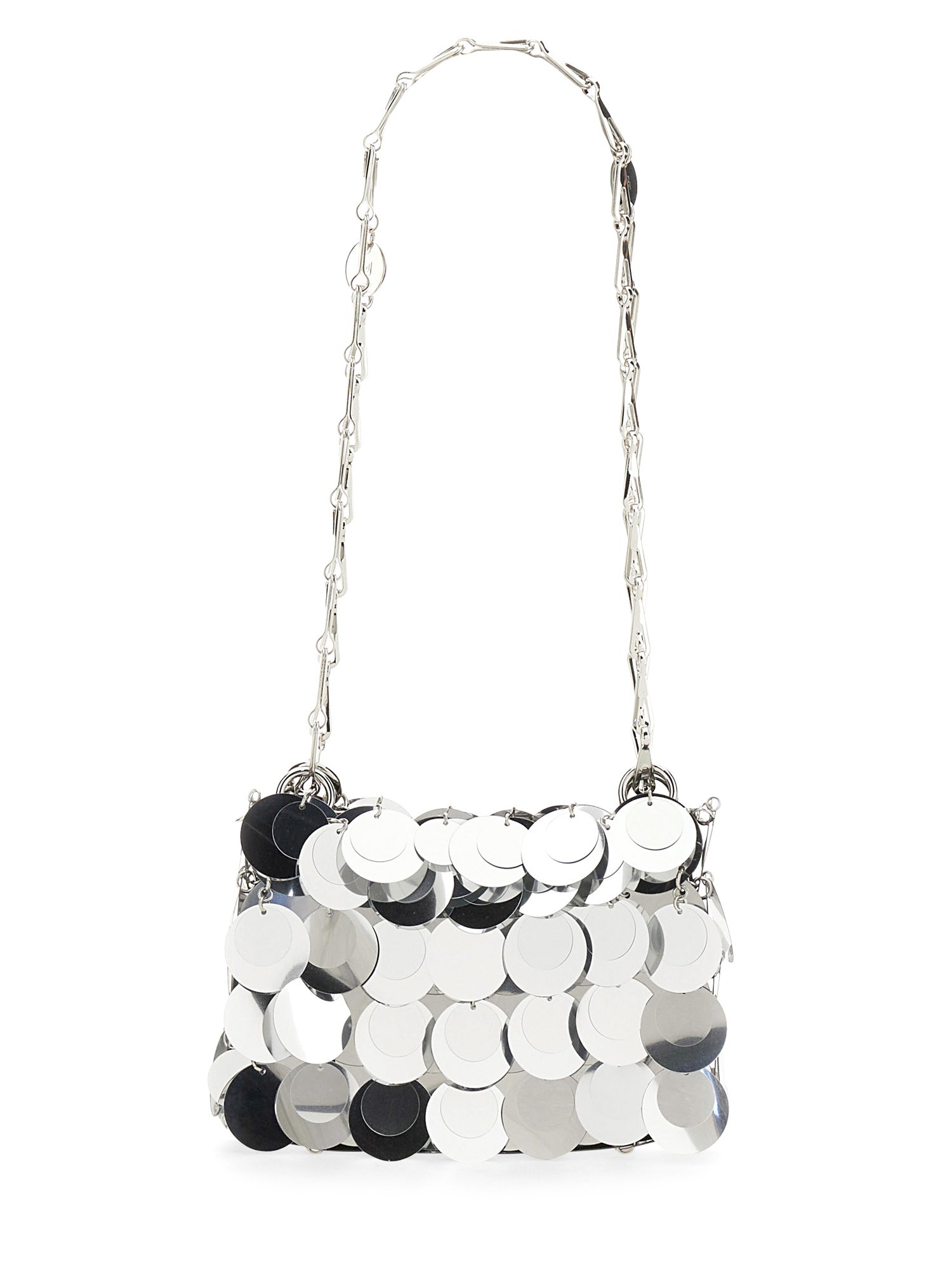La borsa "Sparkle Nano" di Rabanne è un accessorio di grande impatto che unisce un design moderno a un tocco di glamour. Realizzata con un'attenzione meticolosa ai dettagli, questa borsa presenta un'esclusiva finitura scintillante che cattura la luce in modo meraviglioso, rendendola un pezzo forte per ogni occasione. Le sue dimensioni compatte sono perfette per trasportare gli oggetti essenziali mantenendo una silhouette chic, mentre il design versatile permette di abbinarla senza sforzo sia a un abbigliamento casual che formale. Elevate il vostro stile con la squisita fattura e l'eleganza contemporanea della borsa Sparkle Nano.