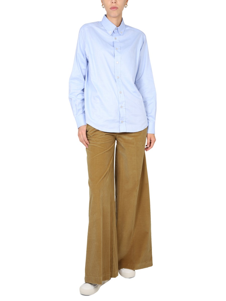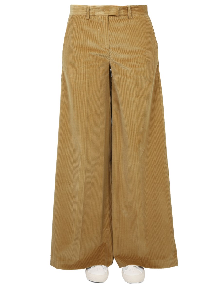 Questi lussuosi pantaloni palazzo in velluto a coste di Ballantyne sono realizzati in un morbidissimo tessuto di velluto a coste che vi terrà al caldo in inverno. I pantaloni presentano una chiusura con gancio e cerniera e due tasche laterali. I pantaloni, dalla vestibilità regolare, hanno una silhouette a gamba larga.