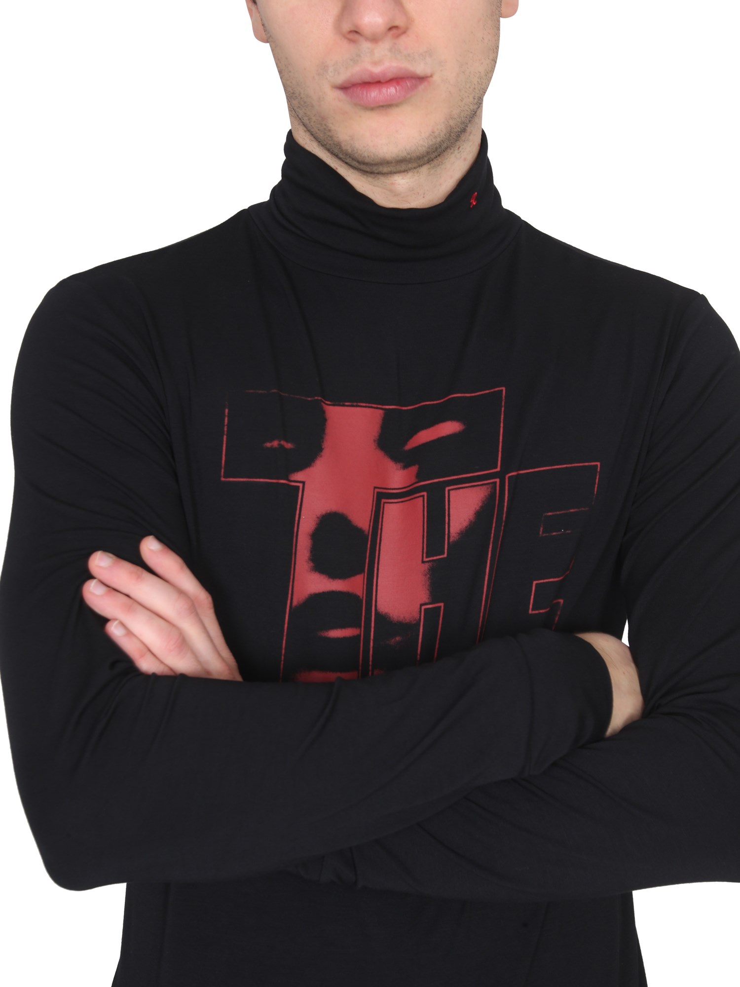 Il top a collo alto con stampa logo di Raf Simons è il capo perfetto per la stagione autunnale. Realizzata con un tessuto setoso, questa camicia vi manterrà fresche e accoglienti per tutto il giorno. Abbinatela a un paio di leggings o di jeans per un outfit casual. Con il collo alto e la stampa del logo, questo top nero è un pezzo unico.