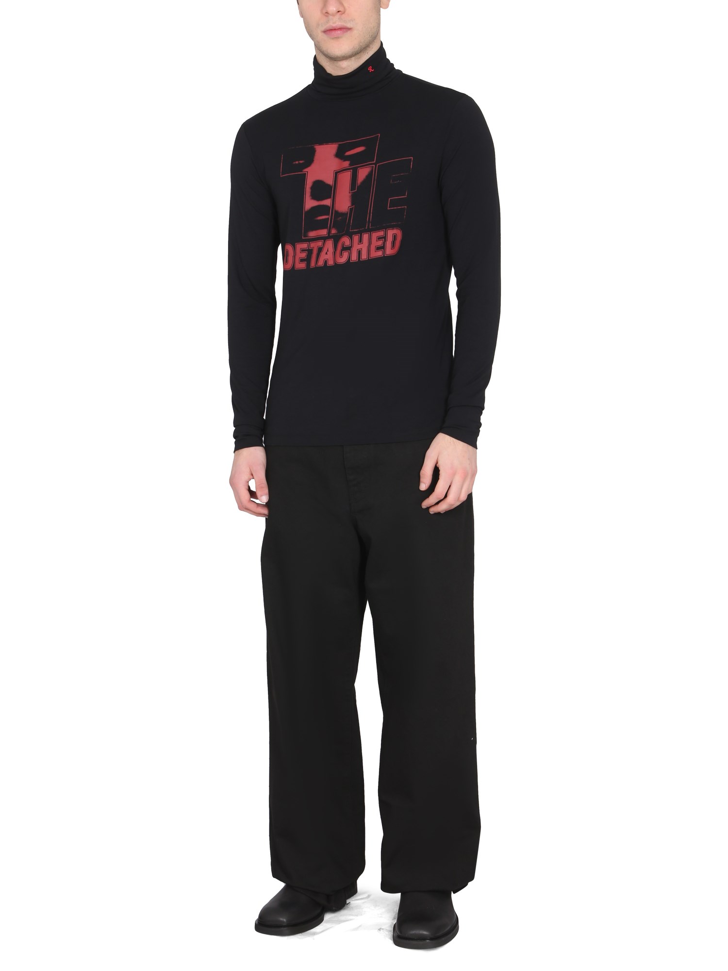 Il top a collo alto con stampa logo di Raf Simons è il capo perfetto per la stagione autunnale. Realizzata con un tessuto setoso, questa camicia vi manterrà fresche e accoglienti per tutto il giorno. Abbinatela a un paio di leggings o di jeans per un outfit casual. Con il collo alto e la stampa del logo, questo top nero è un pezzo unico.