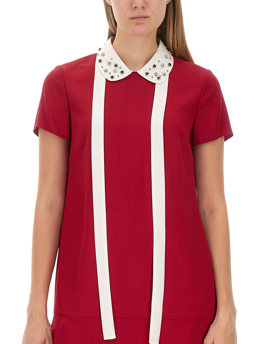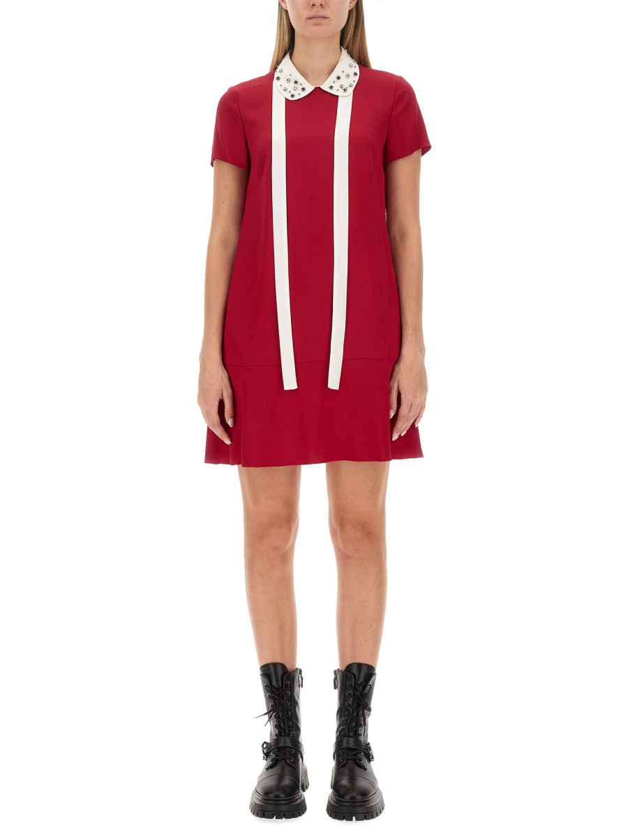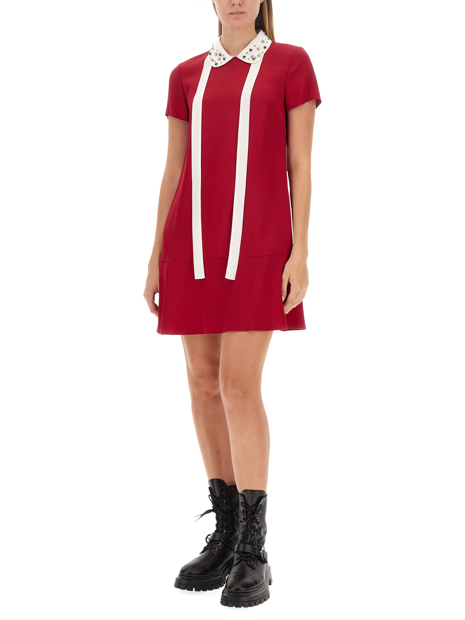 Vi presentiamo la dichiarazione di moda per eccellenza: L'abito in crêpe rosso misto acetato con colletto classico di Red Valentino. Questo modello è un must per ogni fashionista. Con il suo design senza tempo e il suo tessuto lussuoso, farà girare la testa ovunque. Preparatevi a calcare il tappeto rosso o qualsiasi altra occasione con questo abito da urlo!