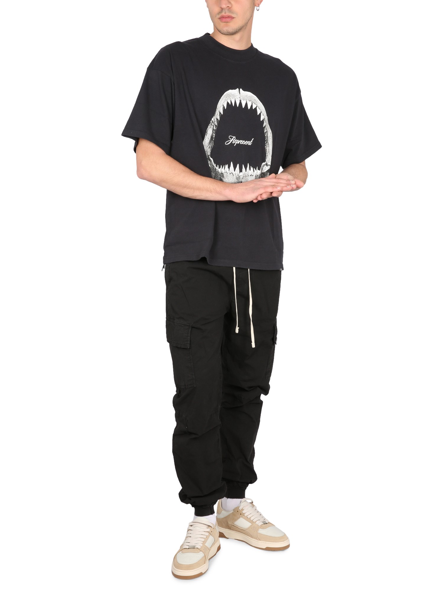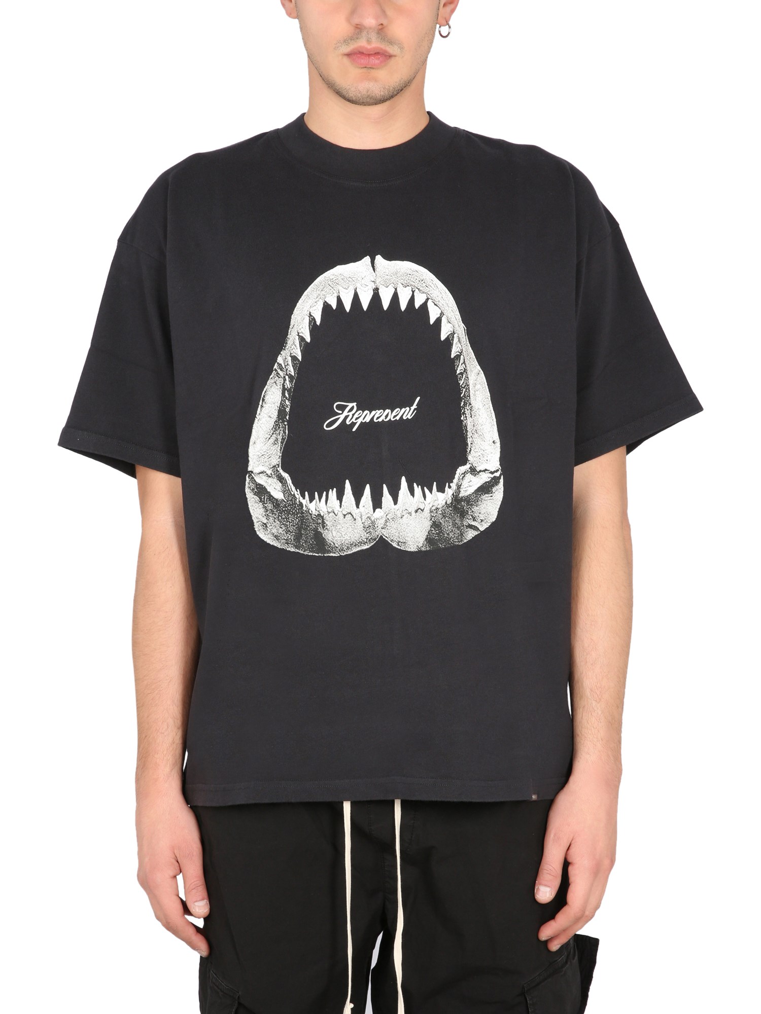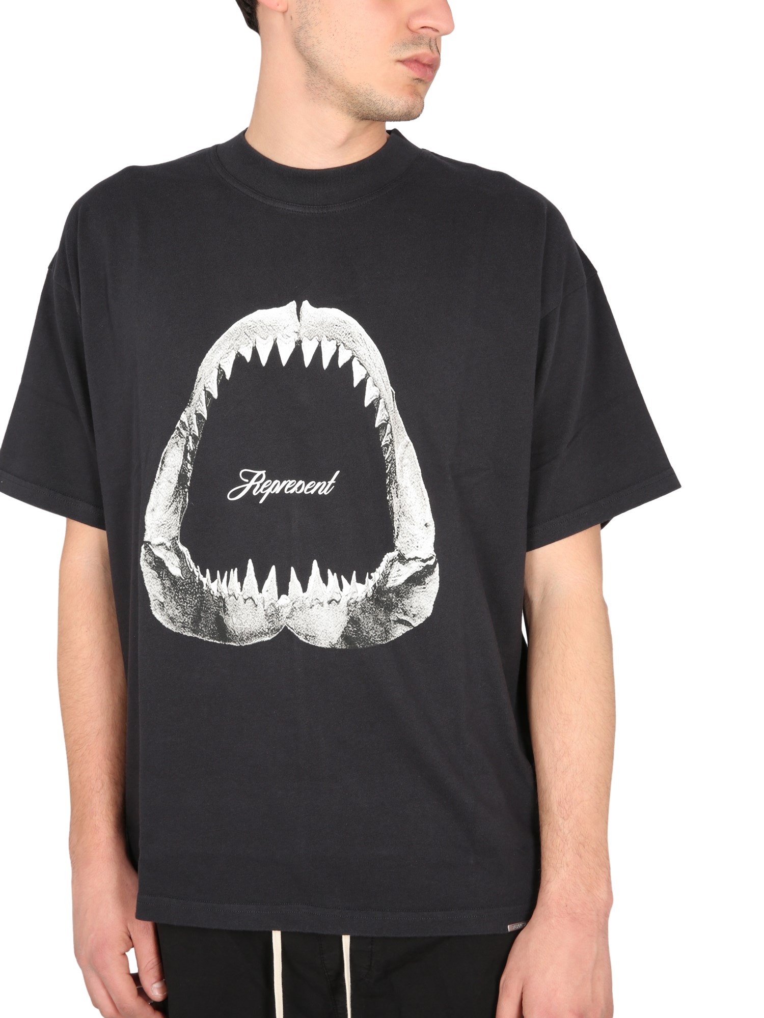 - GIROCOLLO- STAMPA SHARK JAWS- 100% COTONE- IL MODELLO È ALTO 185 CM E INDOSSA LA TAGLIA L