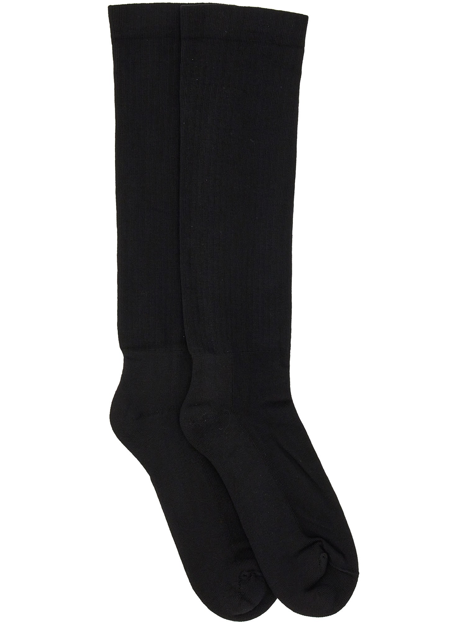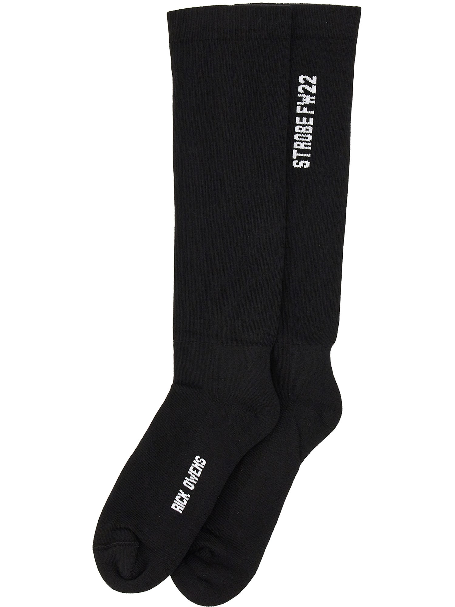 Calze alte di Rick Owens perfette per la stagione fredda. Realizzati con materiale spesso ed elastico e con un elastico sul ginocchio, questi calzini terranno i vostri piedi al caldo e al riparo. Questi calzini sono perfetti per le persone con un'ampia gamma di misure di scarpe. Hanno una punta rinforzata e un tessuto elastico perfetto per il comfort dei vostri piedi.