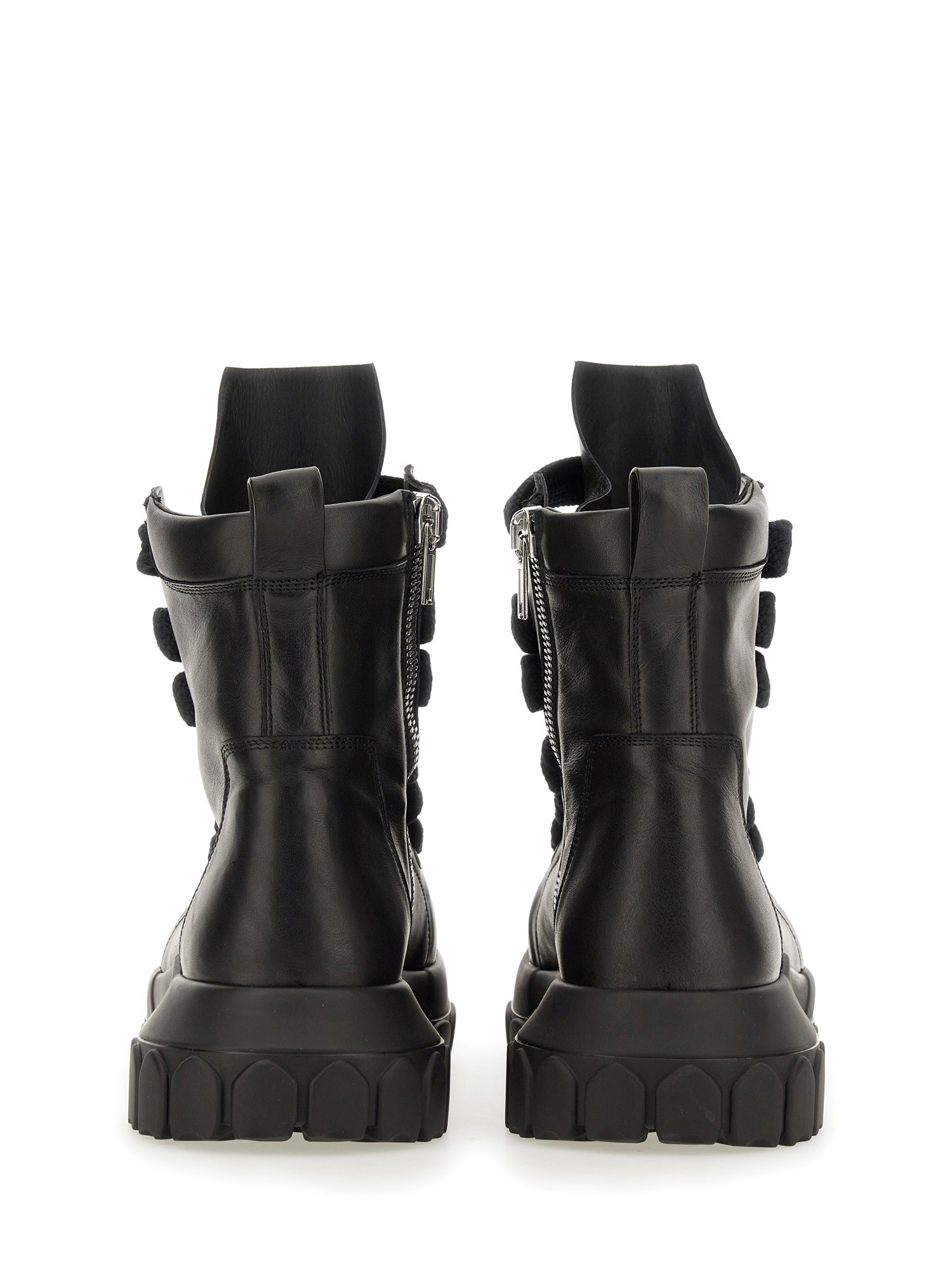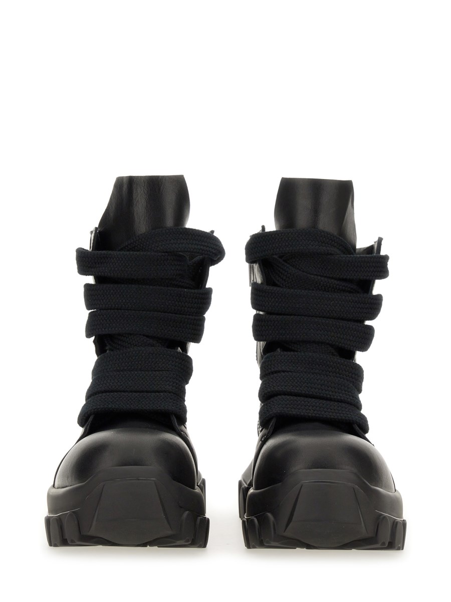 Elevate la vostra collezione di calzature con gli stivali in pelle Jumbolaced Laceup Bozo Tractor di Rick Owens. Realizzati in pelle di alta qualità, questi stivali sono caratterizzati da un design unico con lacci e da una suola a trattore per un look audace e tagliente. Perfetti per aggiungere un tocco di raffinatezza urbana a qualsiasi outfit, questi stivali sono un must-have per gli individui più alla moda. Abbinati a un jeans o a un abito, questi stivali faranno sicuramente la loro figura e porteranno il vostro stile a un livello superiore.