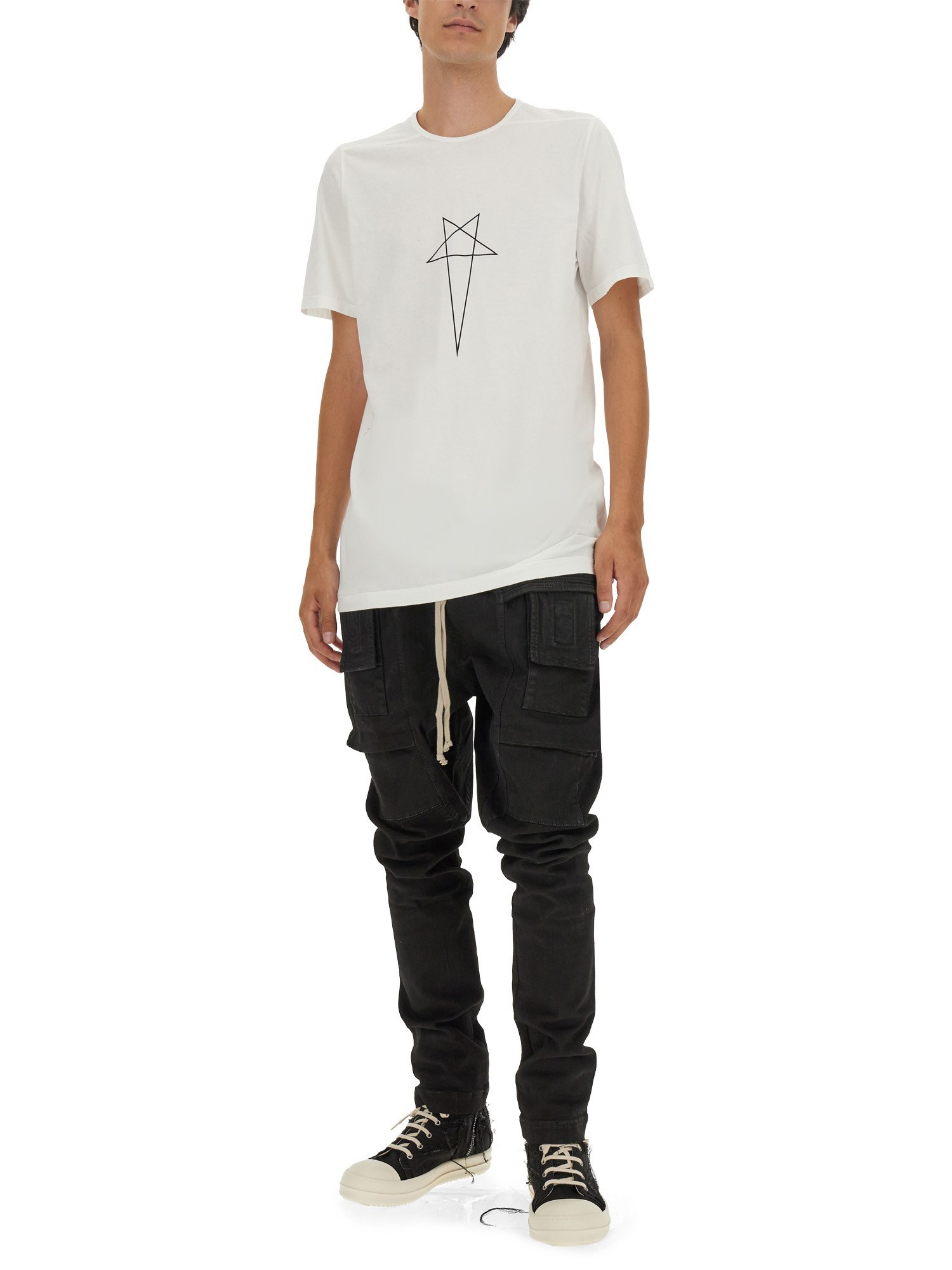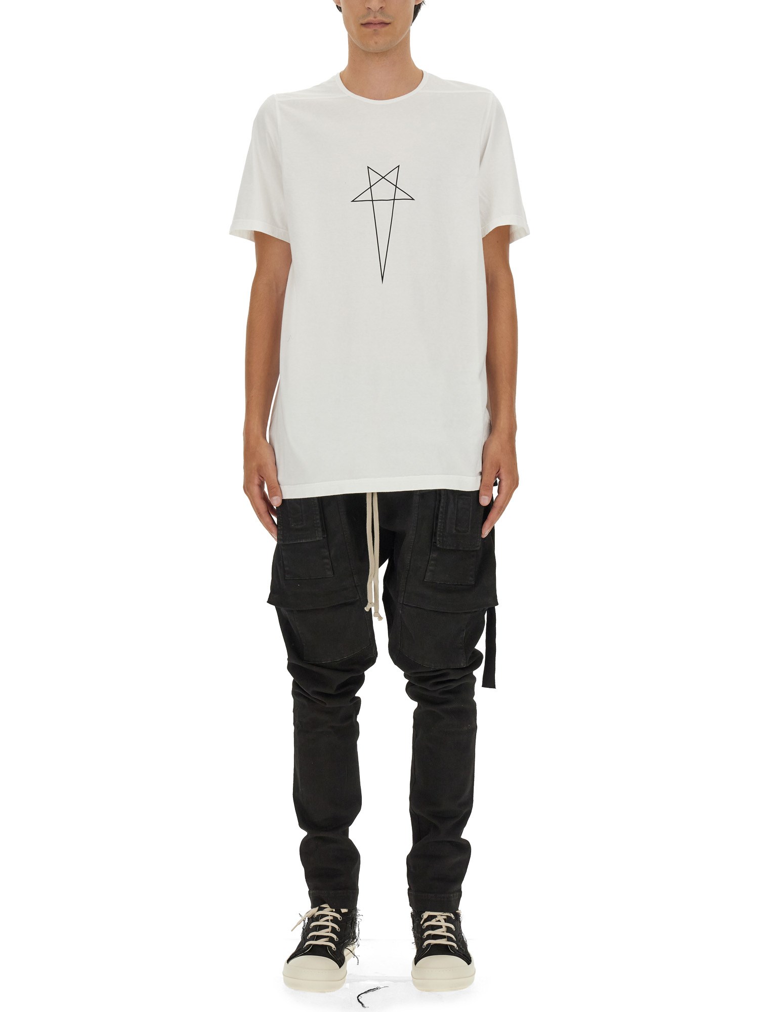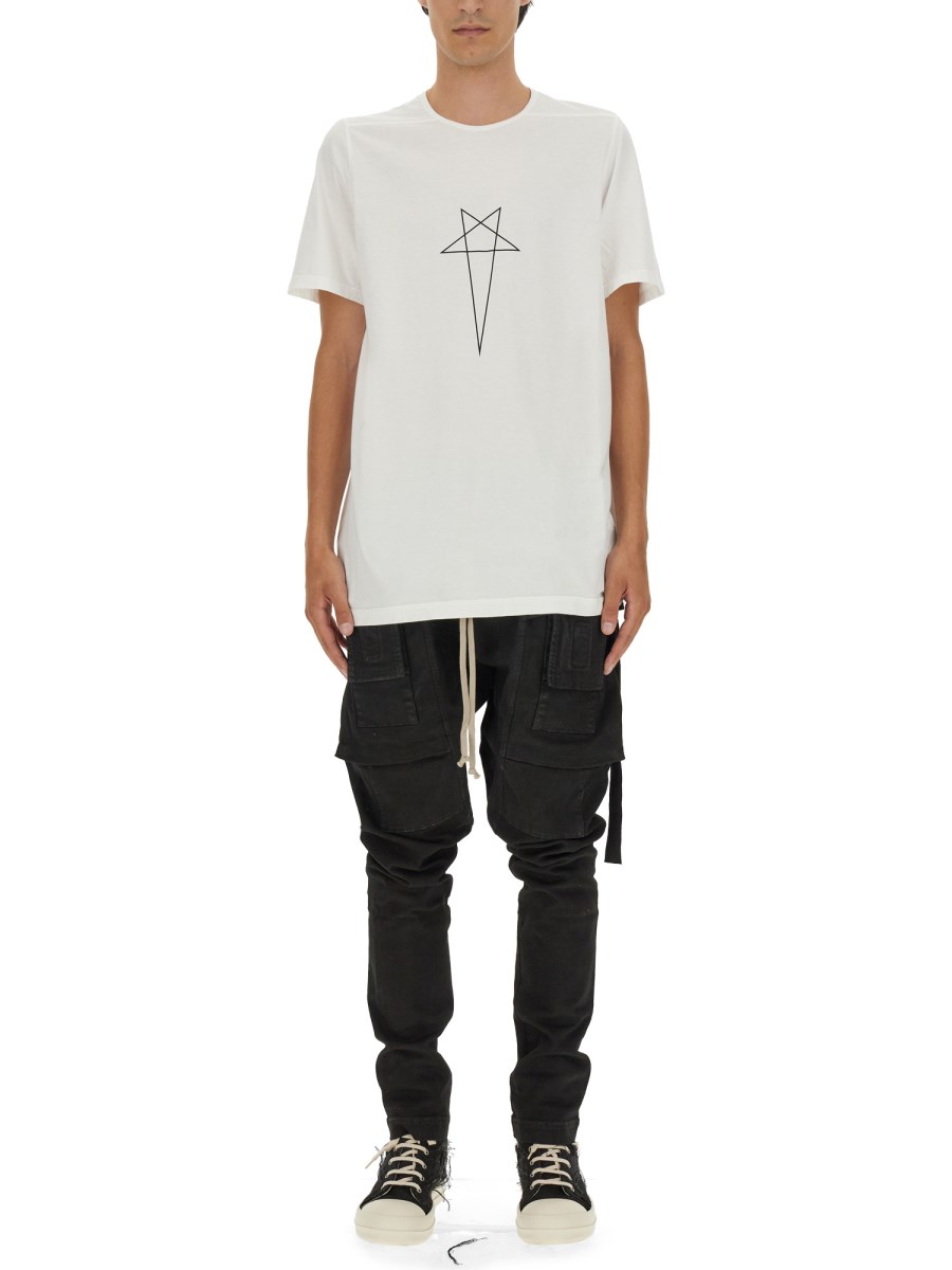 Questa T-shirt di Rick Owens Drkshdw emana senza sforzo un senso di stile sobrio. Realizzata in cotone di prima qualità, offre una sensazione di morbidezza e comfort sulla pelle, assicurando una comodità che dura tutto il giorno. Il classico design a girocollo aggiunge un fascino senza tempo, mentre le mezze maniche assicurano un look rilassato e disinvolto.