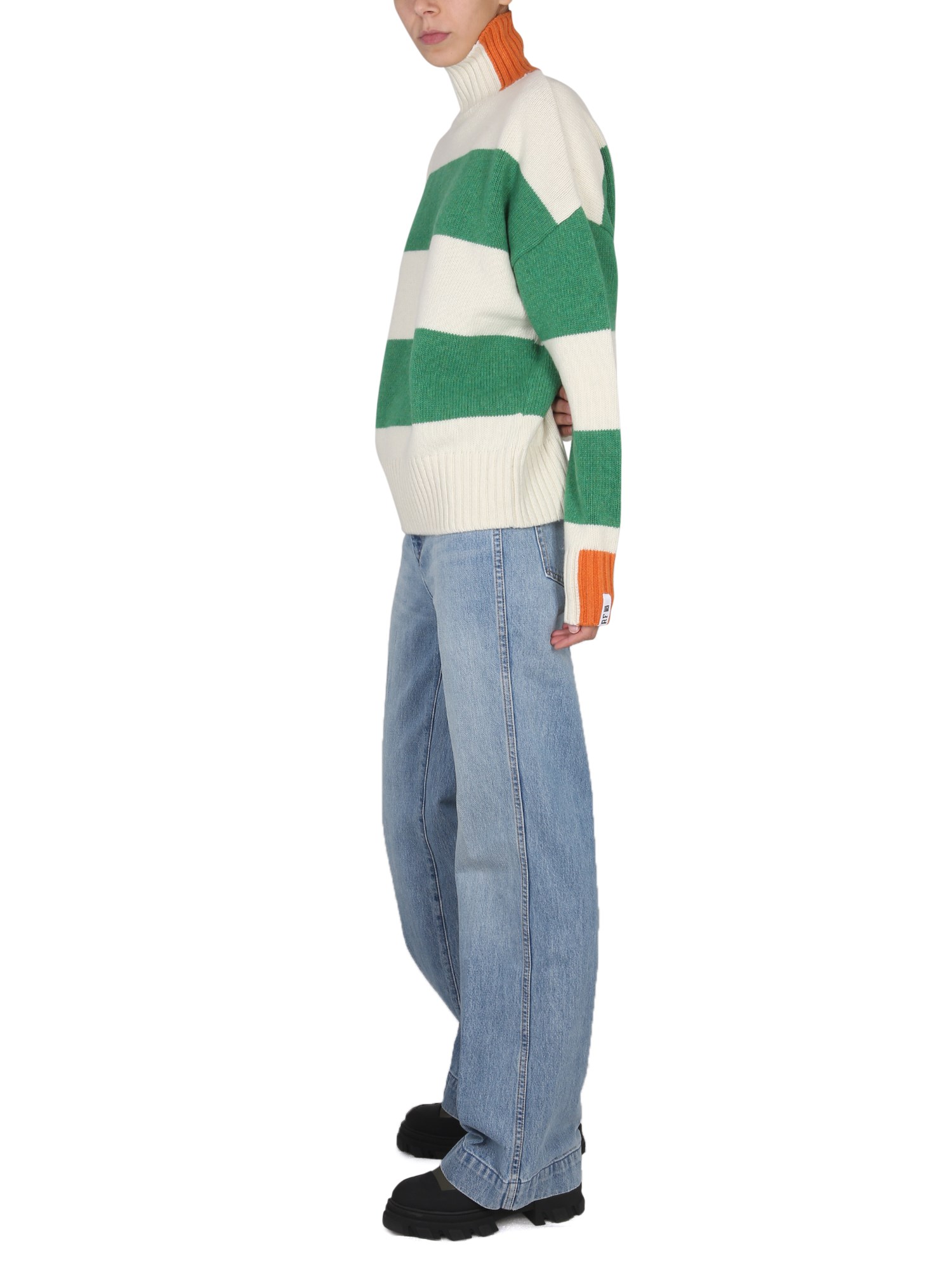 - COLLO ALTO- POLSI, FONDO E COLLO A COSTE- MOTIVO A RIGHE- 70% LANA, 25% POLIAMMIDE, 5% ELASTAN- LA MODELLA È ALTA 180 CM E INDOSSA LA TAGLIA M- IL MODELLO È ALTO 185 CM E INDOSSA LA TAGLIA M