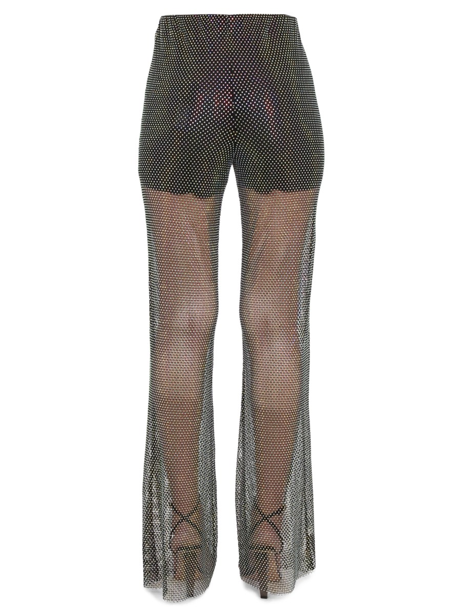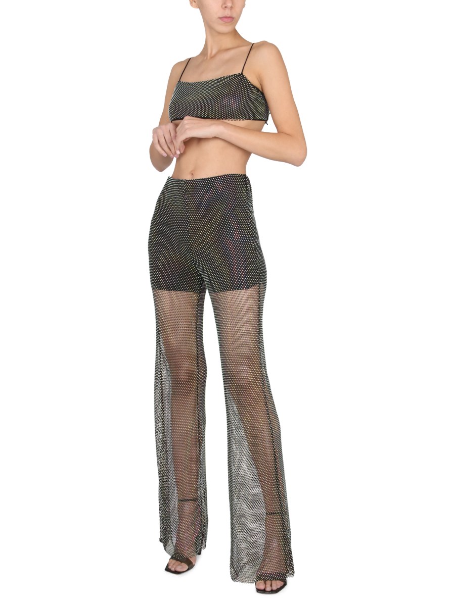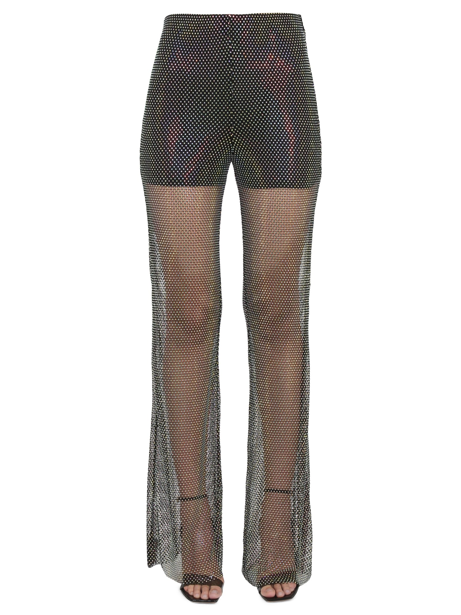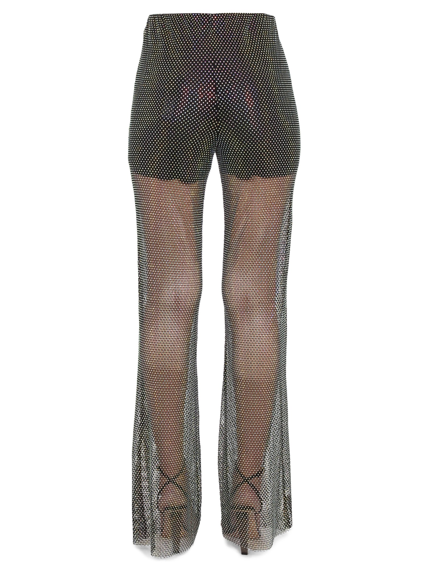 I Crystal Mesh Pants sono un vero e proprio pezzo forte, perfetto per le festività. Hanno una finitura velata con una rete a maglie con perline ovunque. Hanno un taglio dritto e un elastico in vita. Abbinateli al crop top Crystal Mesh String coordinato.