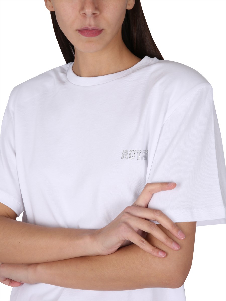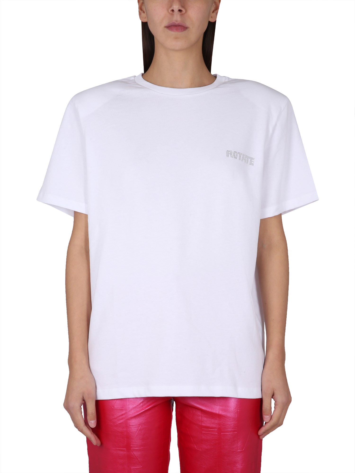 Questa T-shirt di Rotate Birger Christensen ha uno stile e un design unici, con un accattivante dettaglio a girocollo. È realizzata in 100% cotone organico. Presenta un semplice dettaglio cut-out sul logo posteriore con strass, che la rende un capo ideale per il lavoro o per una serata fuori. Il tessuto in cotone organico è leggero e traspirante e vi manterrà fresche durante la calura estiva.