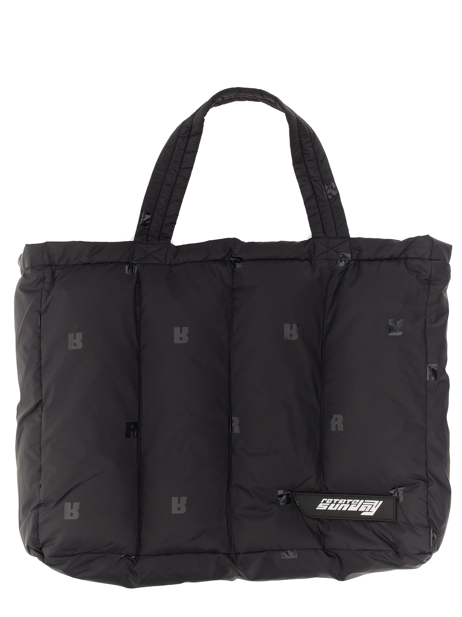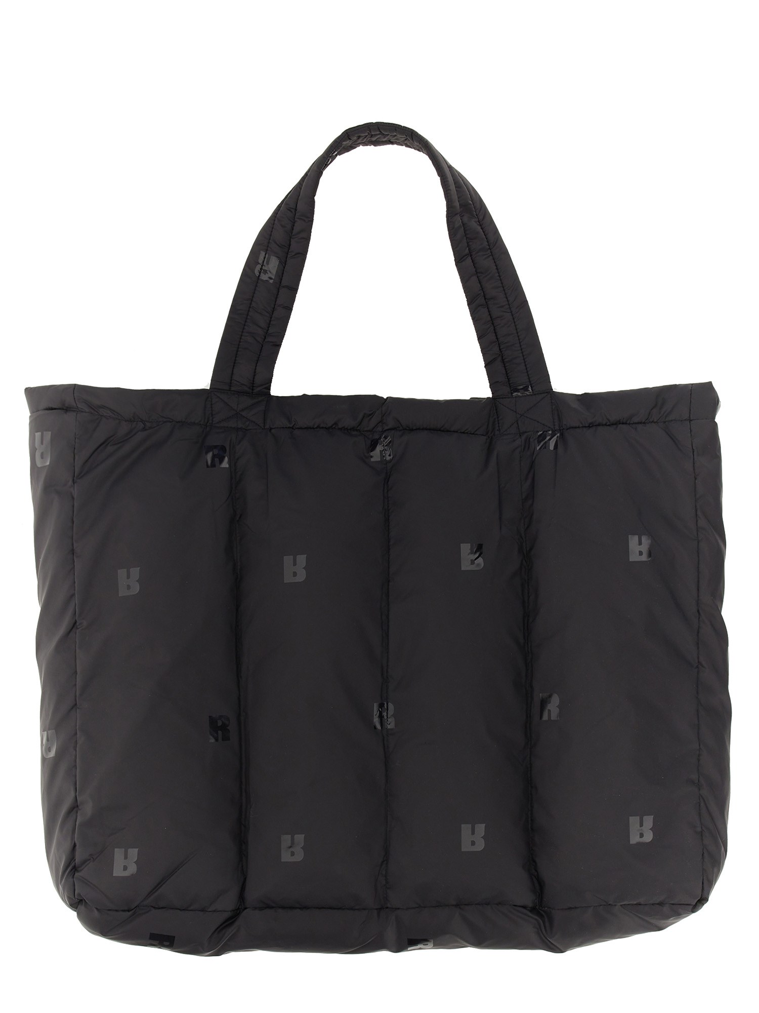 La Puffer Tote Bag in nylon è una tote bag imbottita oversize con manico a tracolla. Presenta un logo sul lato destro della parte anteriore e il logo R stampato su tutta la superficie.