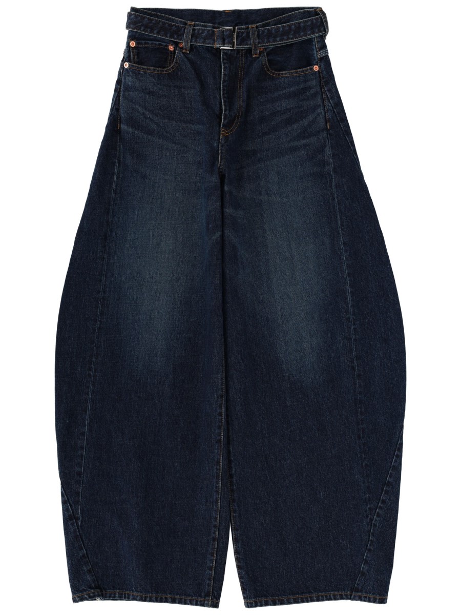 JEANS AMPIO BARREL IN DENIM DI COTONE CON CINTURA
