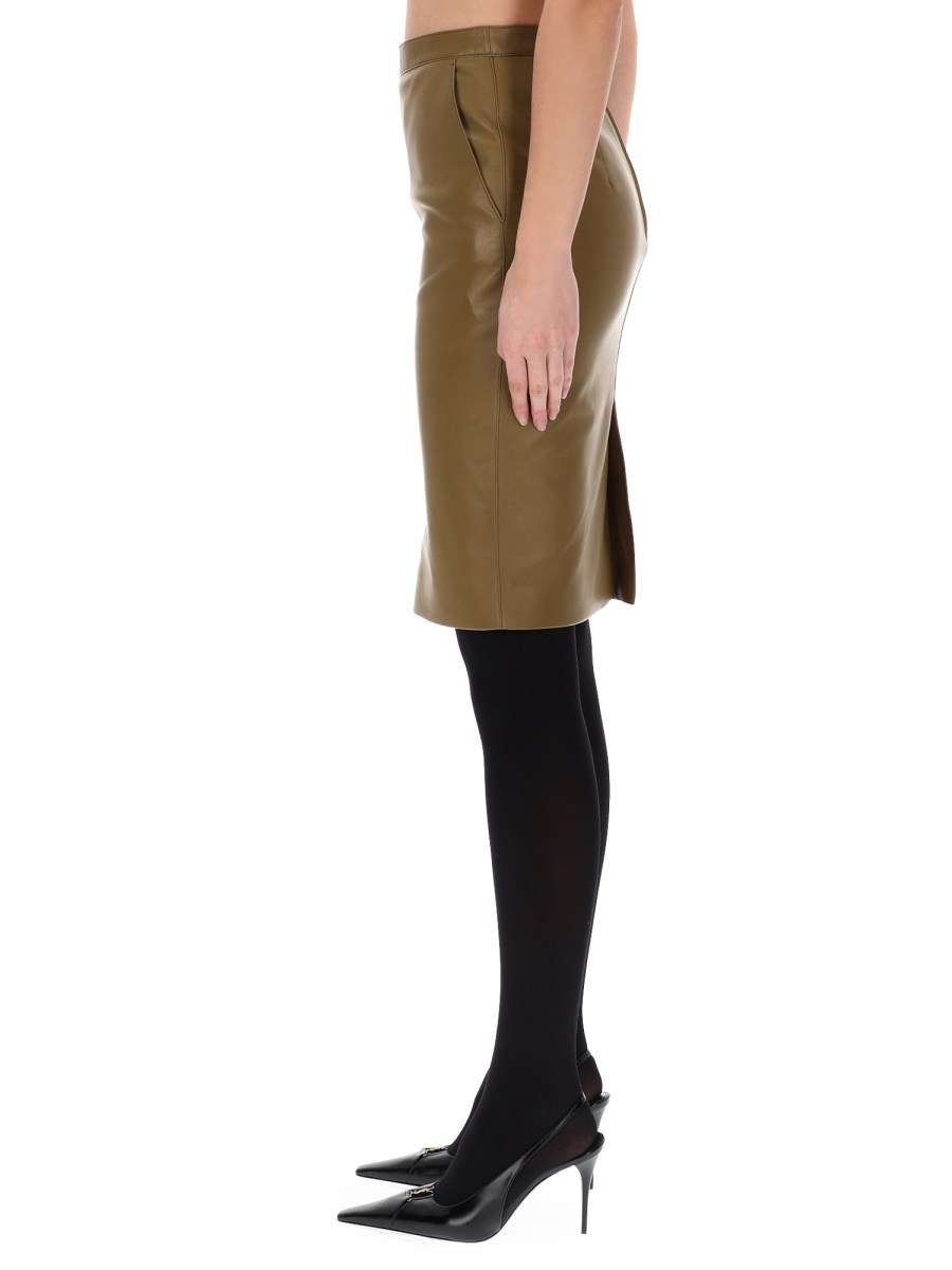 GONNA MIDI IN PELLE CON SPACCO POSTERIORE E DETTAGLIO "CASSANDRE" SULLA ZIP