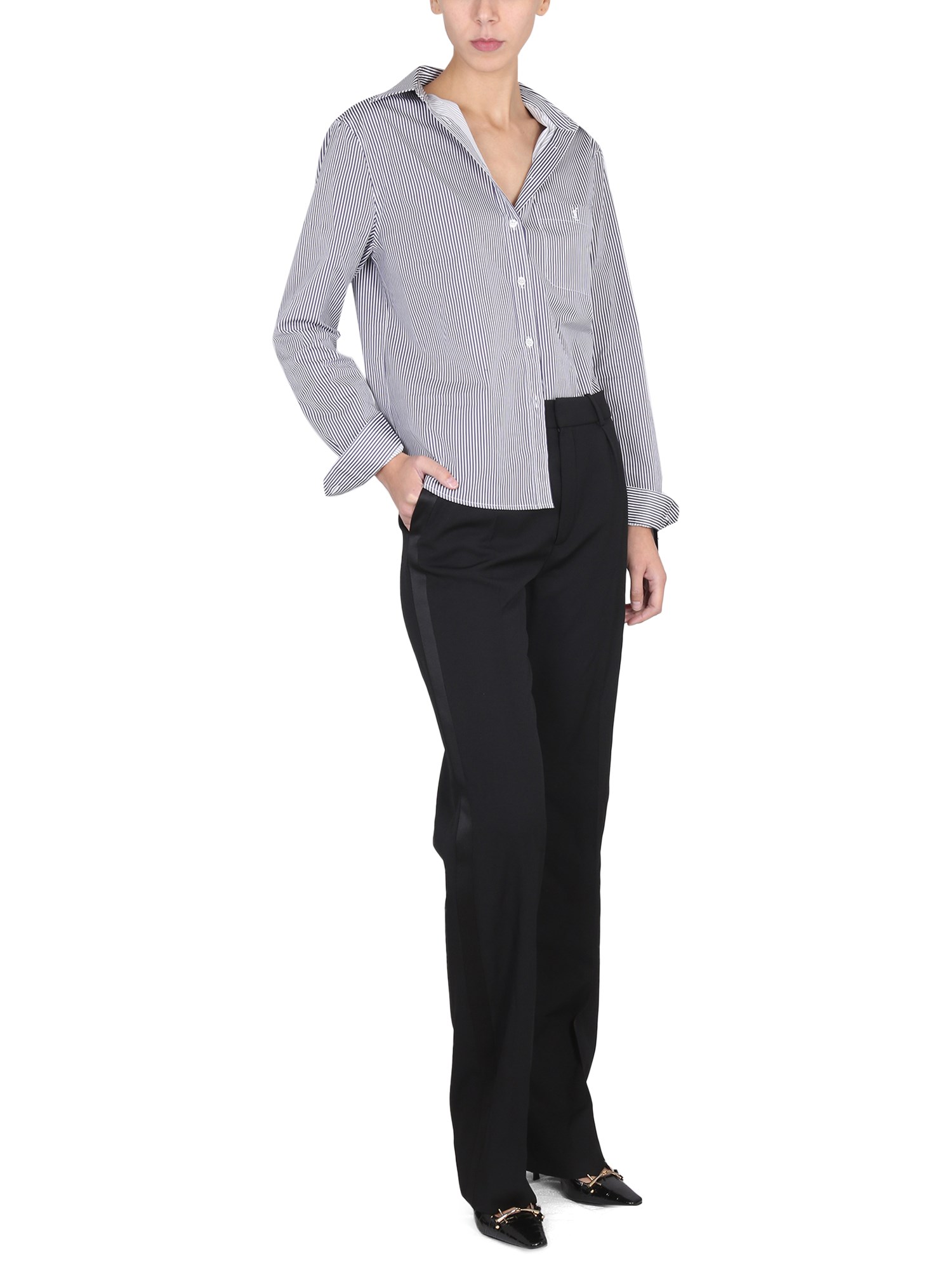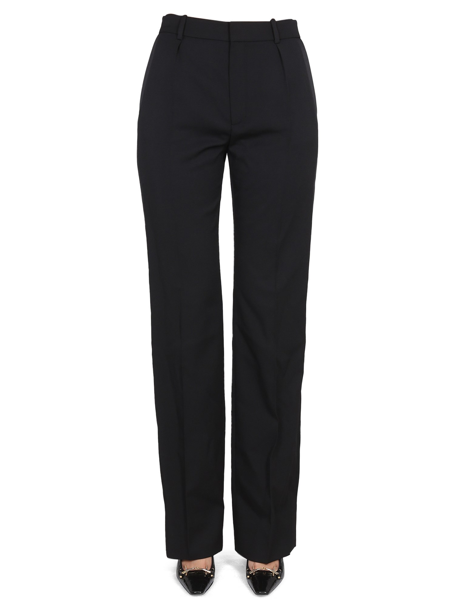 Un paio di pantaloni eleganti e slanciati di Saint Laurent dalla silhouette moderna. I classici pantaloni da smoking neri della nostra categoria più venduta. Sono disponibili in un'ampia gamma di taglie e colori, per trovare la vestibilità perfetta per voi. La chiusura frontale e il dettaglio dei bottoni nascosti sono perfetti per un look casual e professionale.